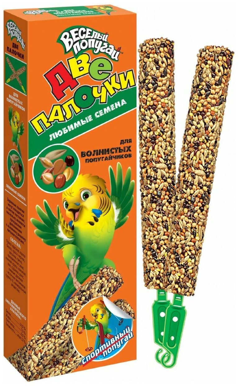 Веселый попугай Лакомство Две палочки Любимые семена для волнистых попугаев, 70 г