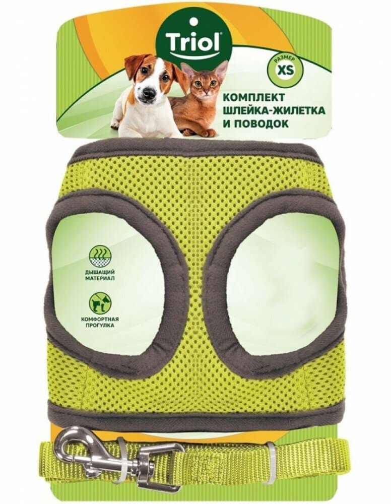 Купить Triol мягкая шлейка-жилетка и поводок нейлоновый неоново-желтый S, обхват груди 350мм, поводок 15