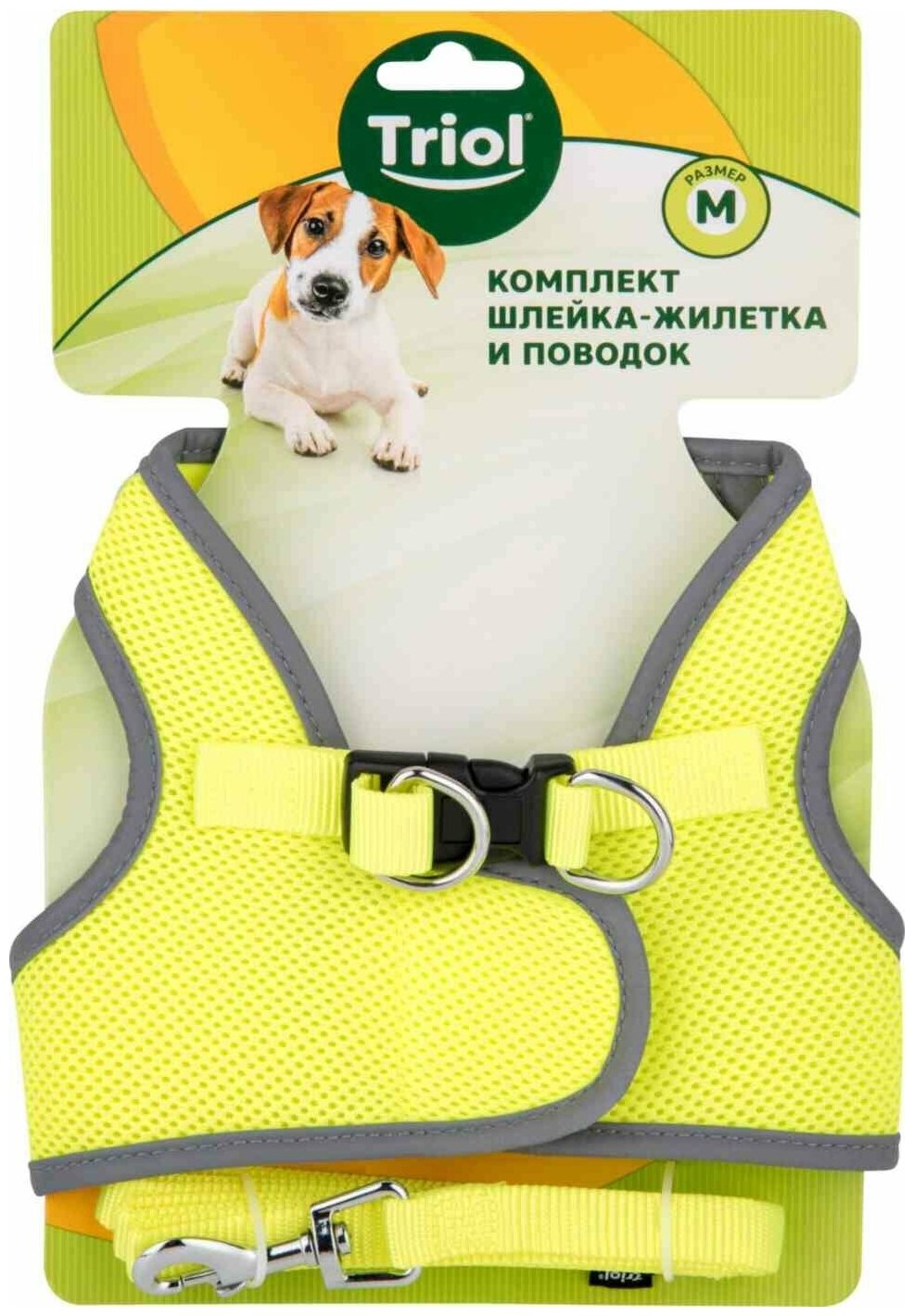 Шлейка жилетка мягкая с поводком для собак Triol M нейлоновая неоново-желтая 40 см/15 мм х 120 см (1 шт)