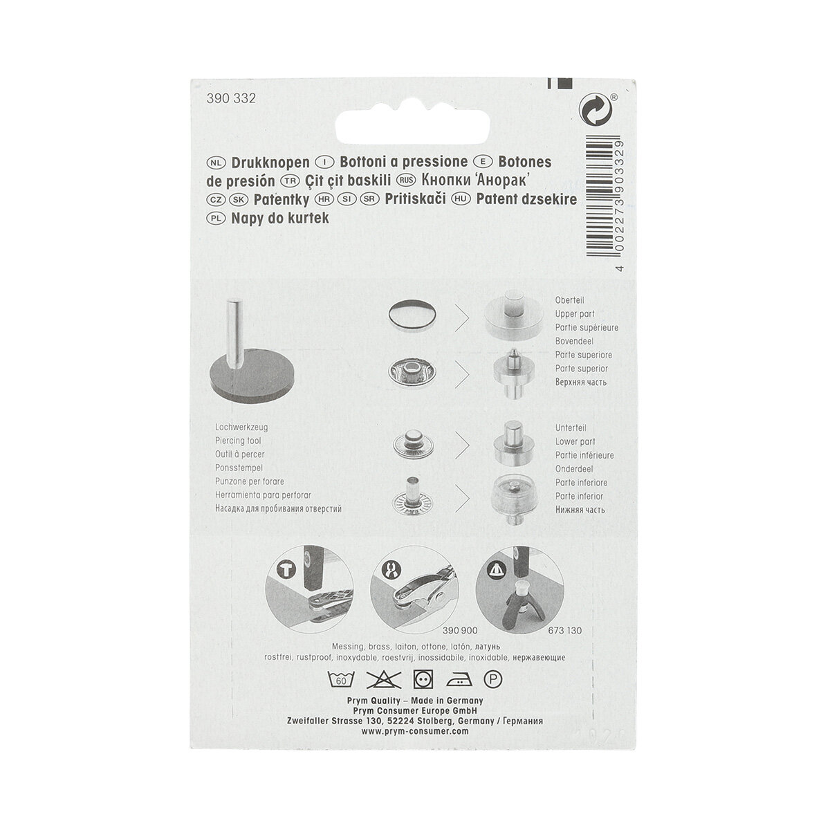 390330 Кнопки 'Анорак' (латунь), серебристый цвет, 12 мм, Prym, 10 шт