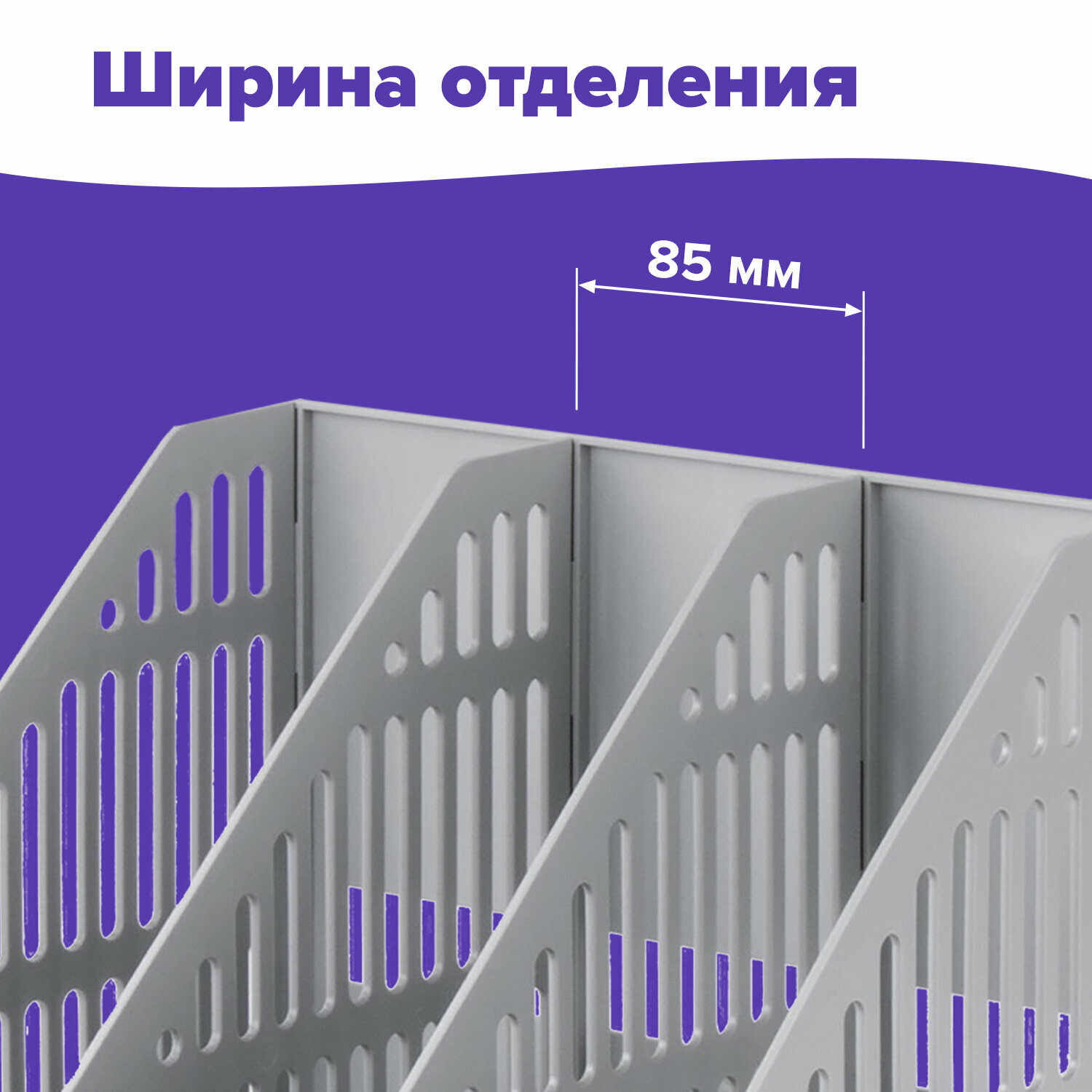 Вертикальный накопитель BRAUBERG Smart-Maxi, ширина 255 мм, 3 отделения, сетчатый, сборный, серый