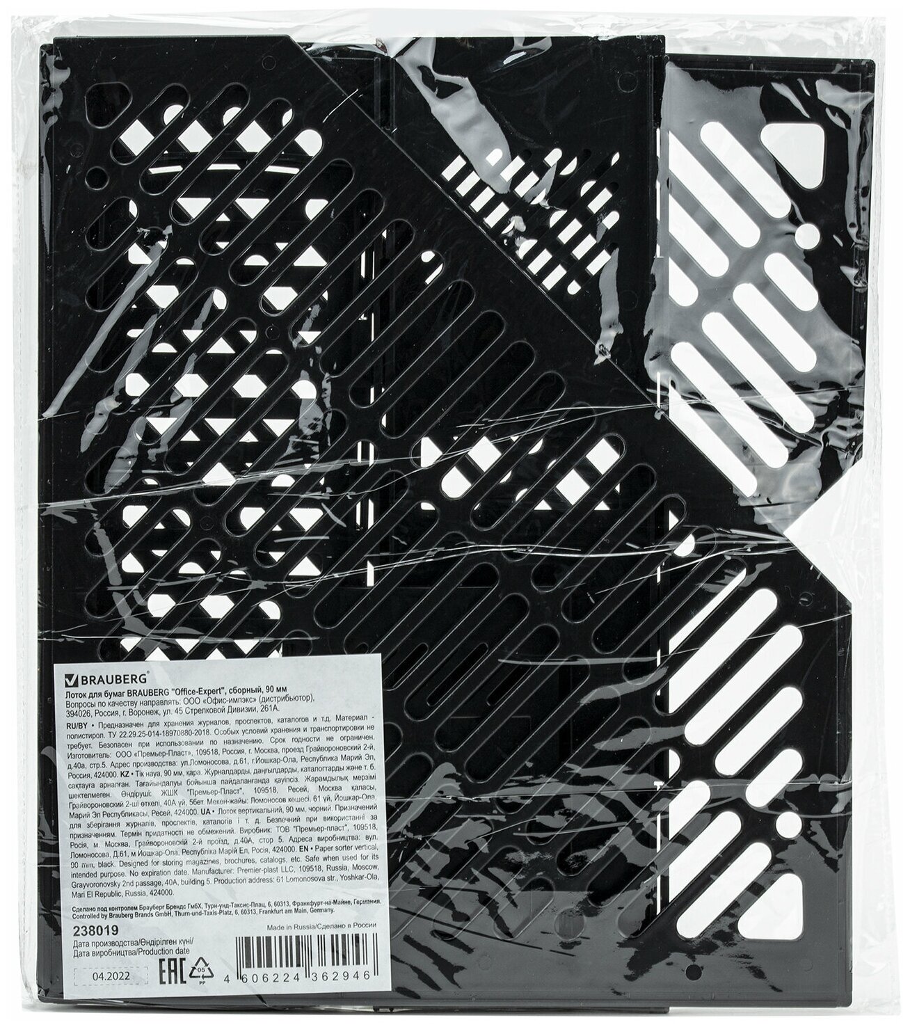 Лоток вертикальный для бумаг BRAUBERG "SMART-MAXI" (254х255х297 мм), 3 отделения, сетчатый, сборный, черный, 231525 В комплекте: 1шт.