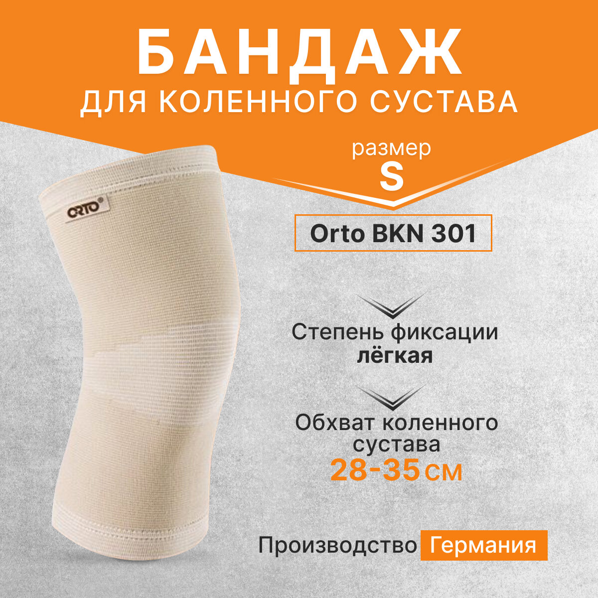 Бандаж на коленный сустав Orto BKN 301, размер S-обхват коленного сустава 28-35 см, бежевый