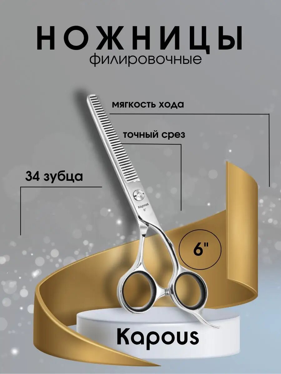 Kapous Professional Ножницы парикмахерские, филировочные, 6.0", 34 зубца на левом полотне (лезвии)