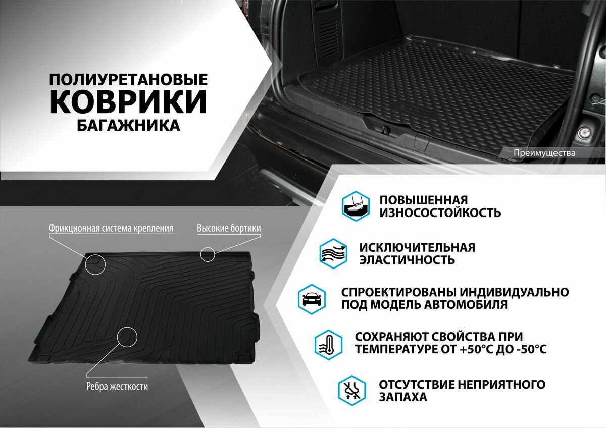 Коврик Багажника Chevrolet Cruze Черный Полиуретан Rival 11003002 Rival арт. 11003002