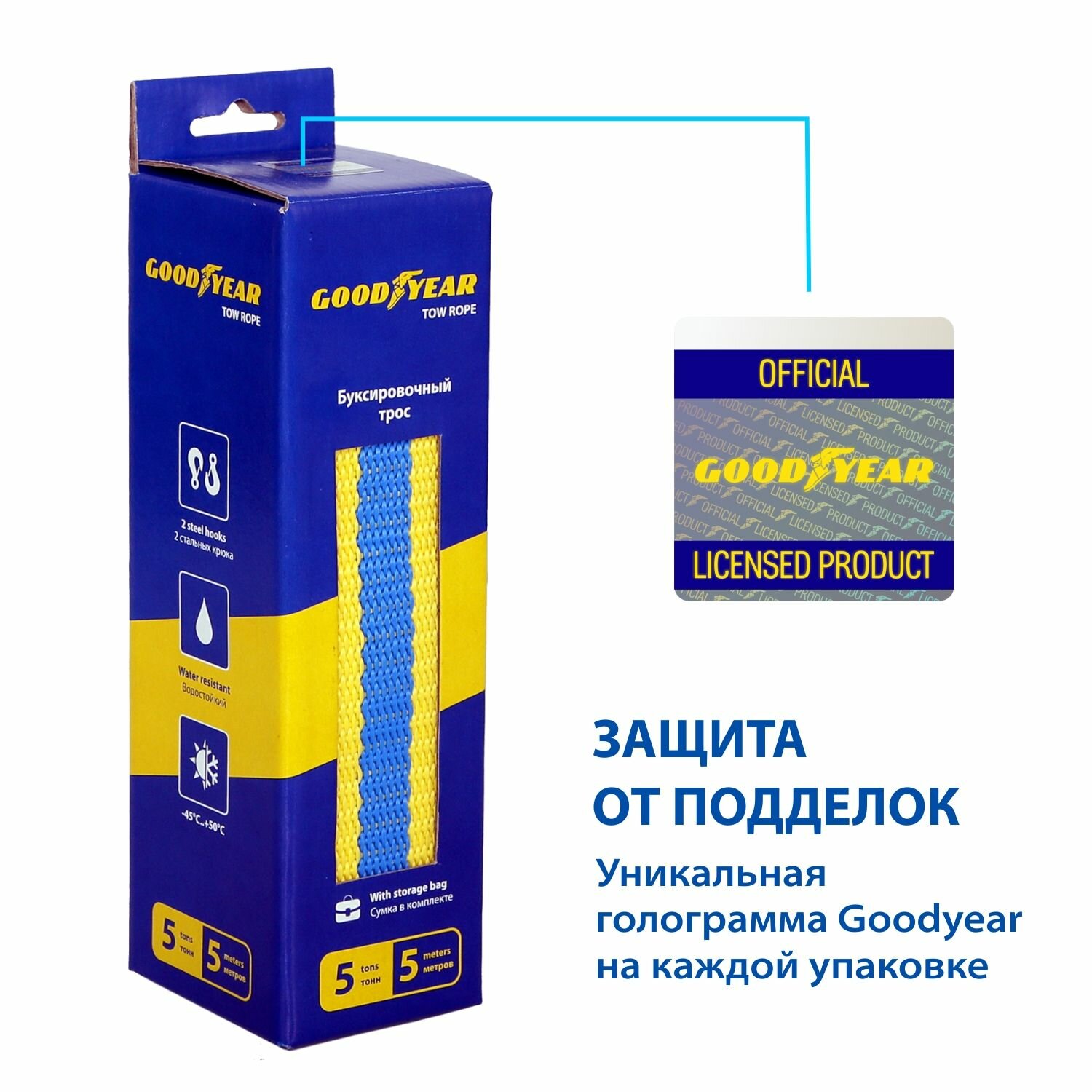 Трос Буксировочный Goodyear 3,5 Тонны, 5 Метров, 2 Стальных Крюка, Водостойкий, Сумка В Комплекте Россия GOODYEAR арт. GY004000
