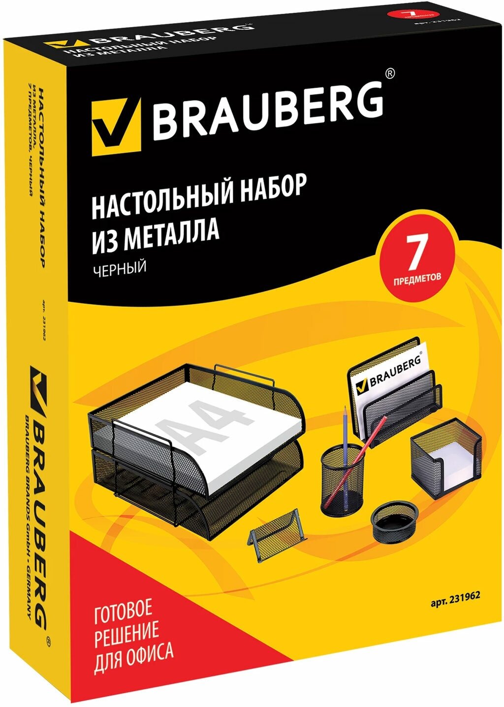Набор BRAUBERG настольный из металла, 7 предметов, черный