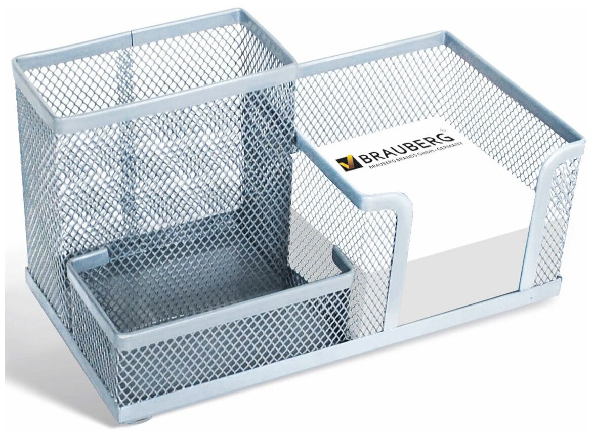 Подставка-органайзер для канцелярии ручек и карандашей настольный Brauberg "Germanium", металлическая, 3 секции, 102х186х95 мм, серебристая