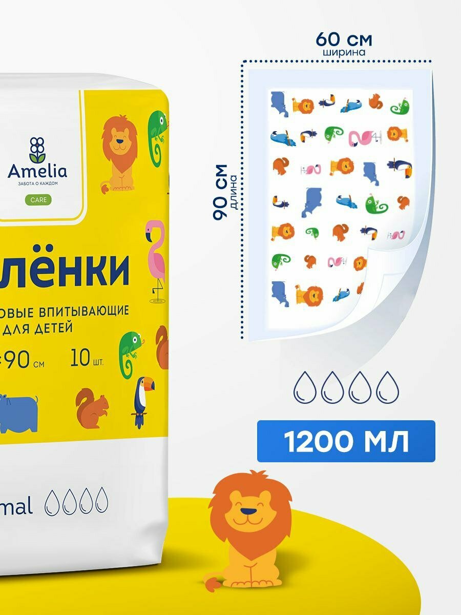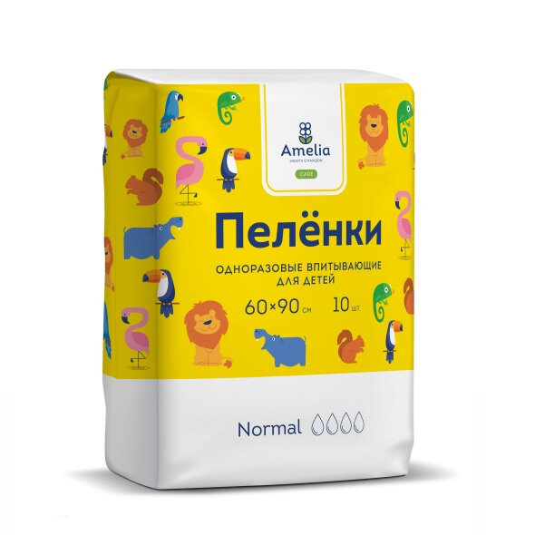 Пеленки одноразовые впитывающие детские Amelia, 60х60, 10 штук