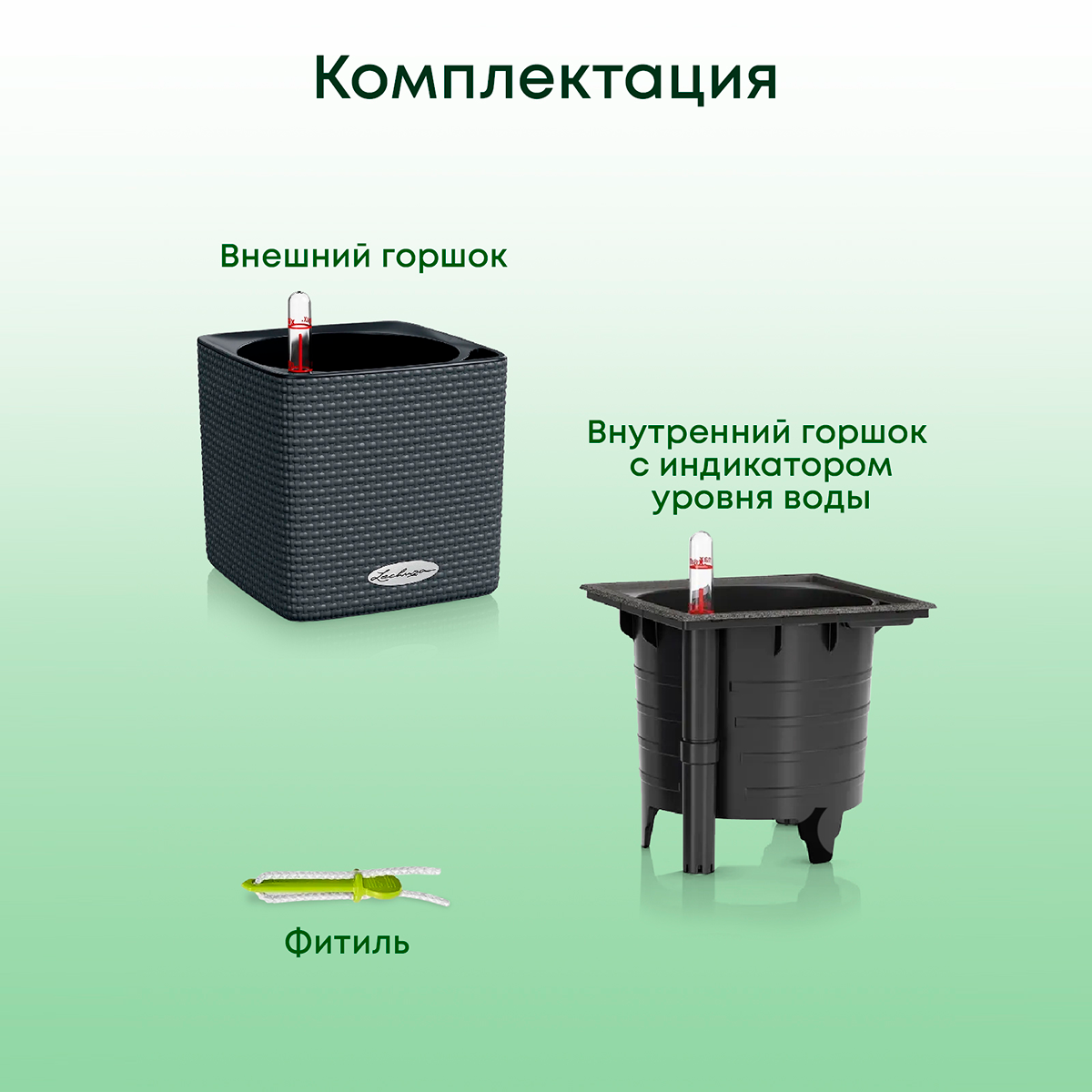 Кашпо с автополивом Lechuza CUBE Color 14, L14 W14 H13,5 см, темно-серое / горшок для цветов