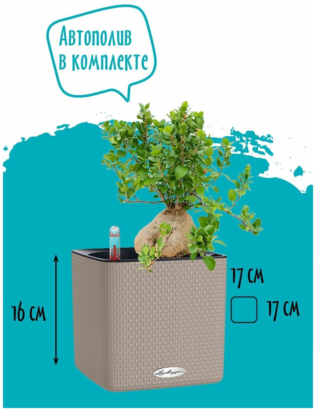 Кашпо с автополивом Lechuza CUBE Color 16, L17 W17 H16 см, песочно-коричневое матовое / горшок для цветов