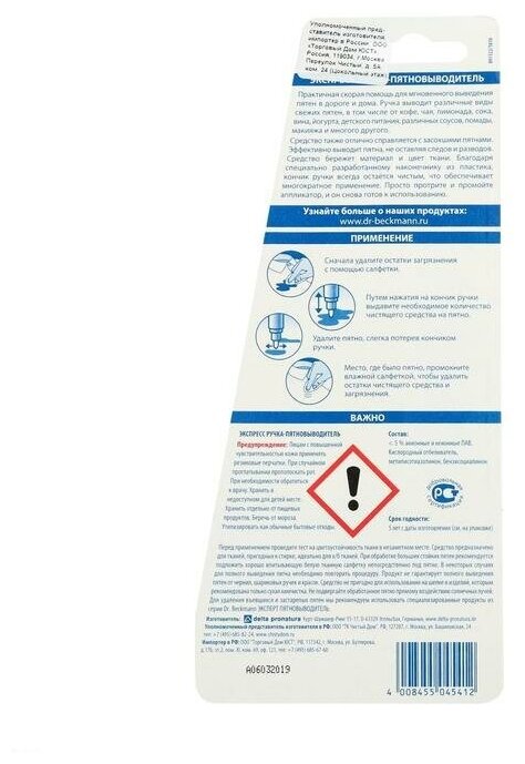 Ниже Вы можете прочитать отзывы на Ручка Пятновыводитель Dr. Beckmann Экспресс, 9 мл, ознакомится с подробными характеристиками, посмотреть интересные обзоры и фотографии на Ручка Пятновыводитель Dr. Beckmann Экспресс, 9 мл.
