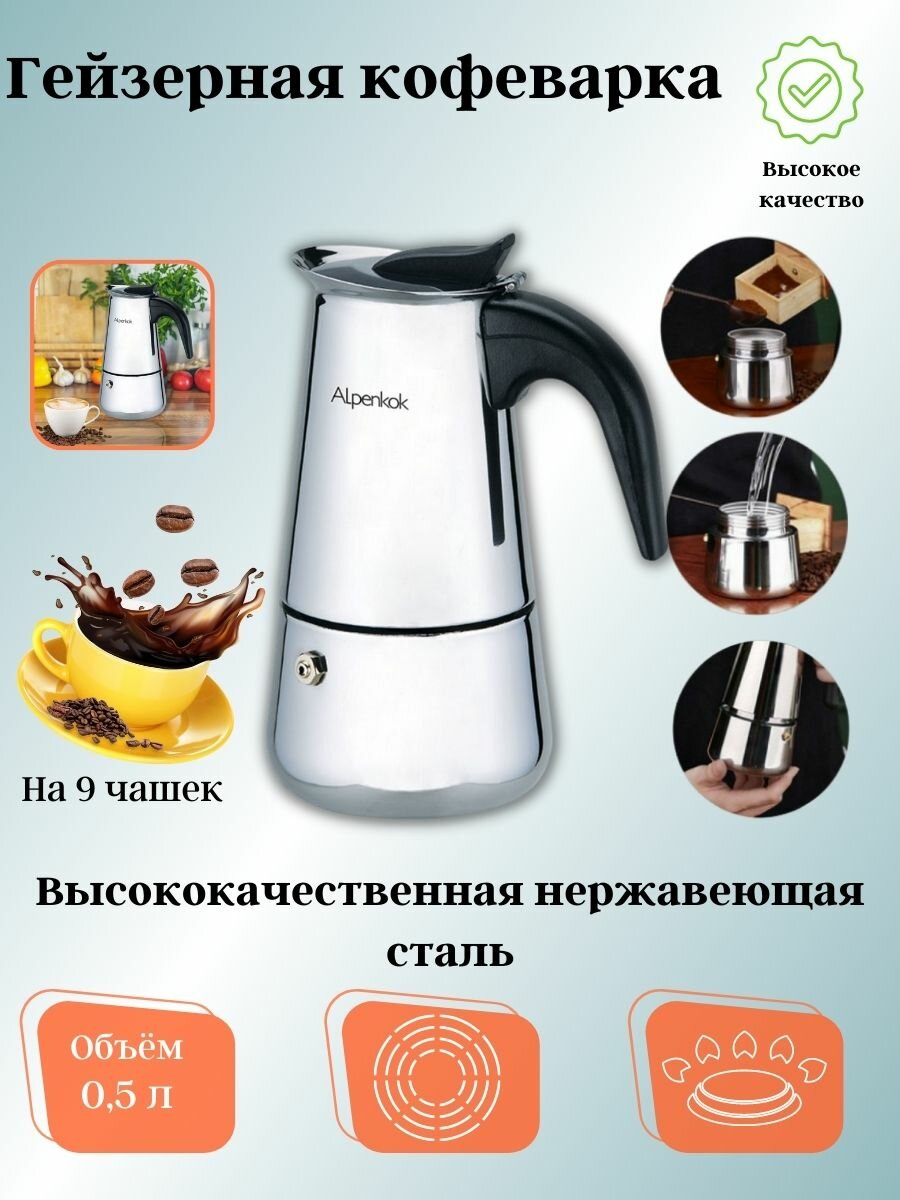 Ниже Вы можете прочитать отзывы на Гейзерная кофеварка Alpenkok AK-803 на 9 чашек (500 мл), 500 мл, серебристый/черный, ознакомится с подробными характеристиками, посмотреть интересные обзоры и фотографии на Гейзерная кофеварка Alpenkok AK-803 на 9 чашек (500 мл), 500 мл, серебристый/черный.