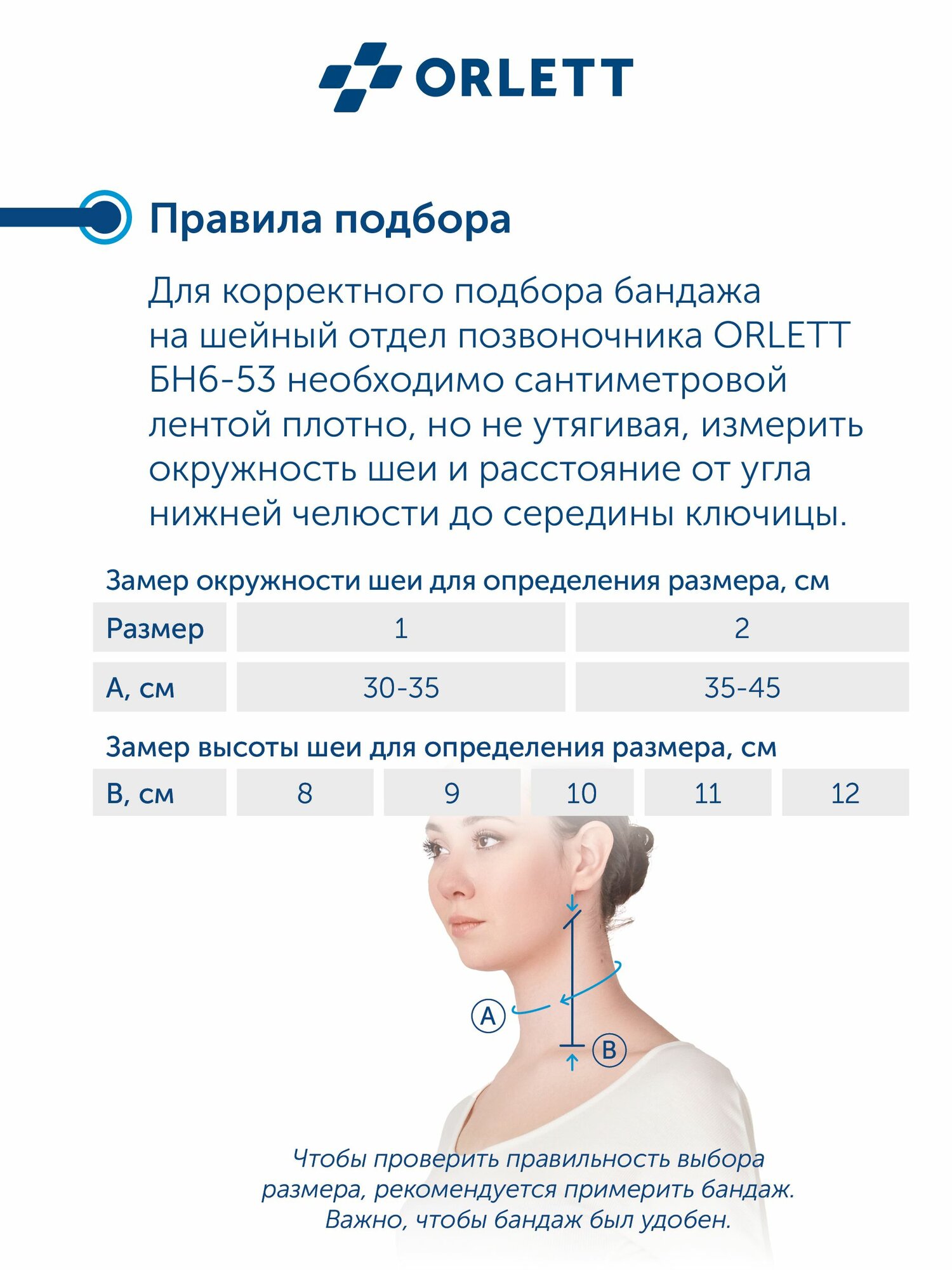Бандаж ORLETT БН6-53-12-2 на шейный отдел позвоночника
