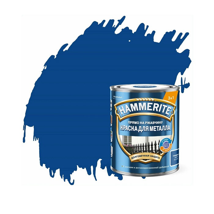 Краска для металла 3 в 1 прямо на ржавчину Hammerite гладкая глянцевая (0,75л) синий RAL 5005