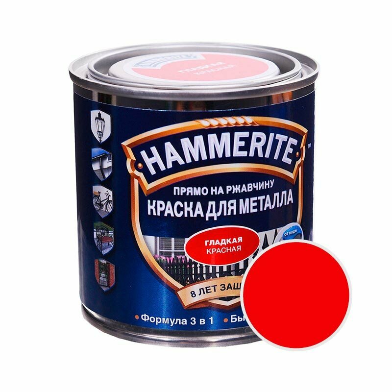 Краска гладкая Hammerite Хаммерайт глянц.красн.(2,5л) Э
