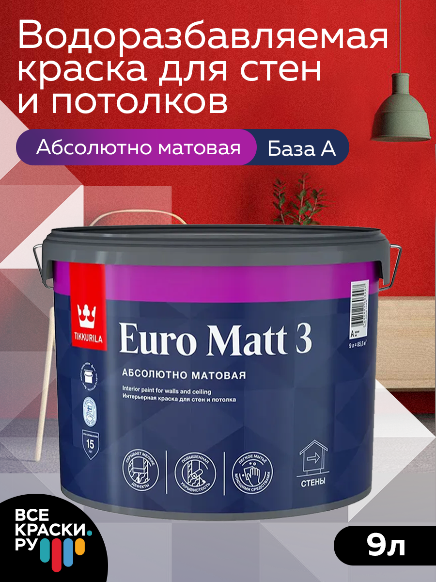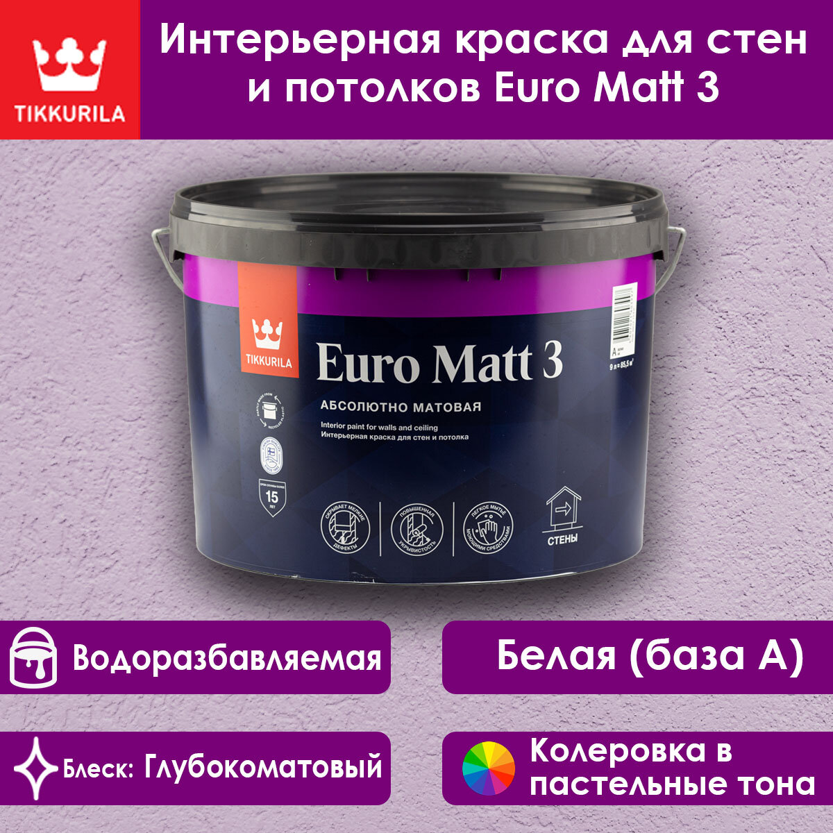TIKKURILA EURO MATT 3 краска интерьерная для стен и потолков, абсолютно матовая, база A (9л)