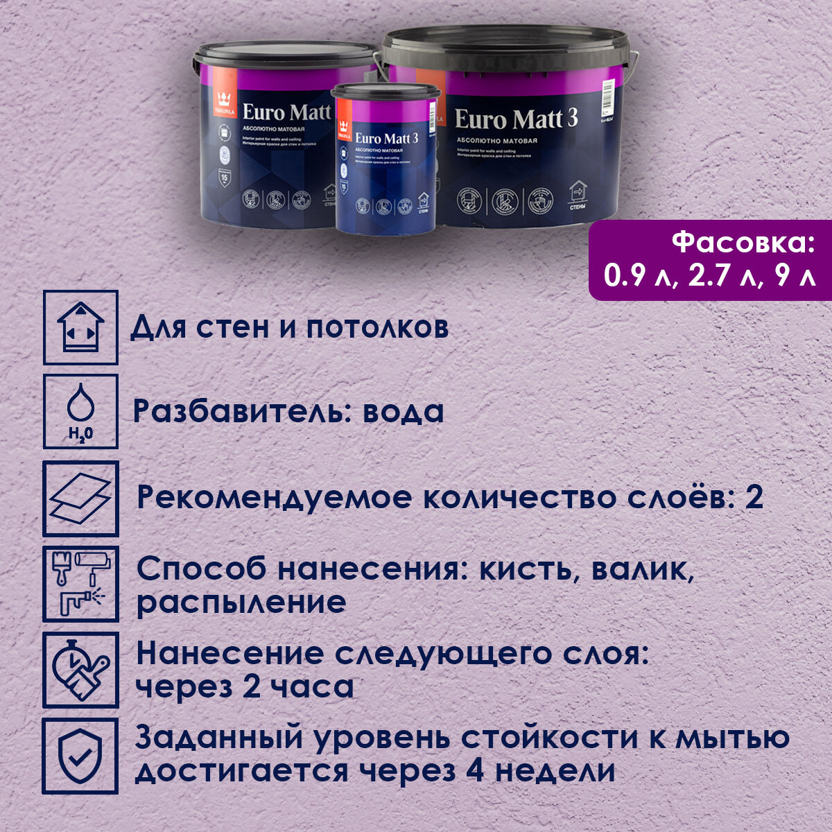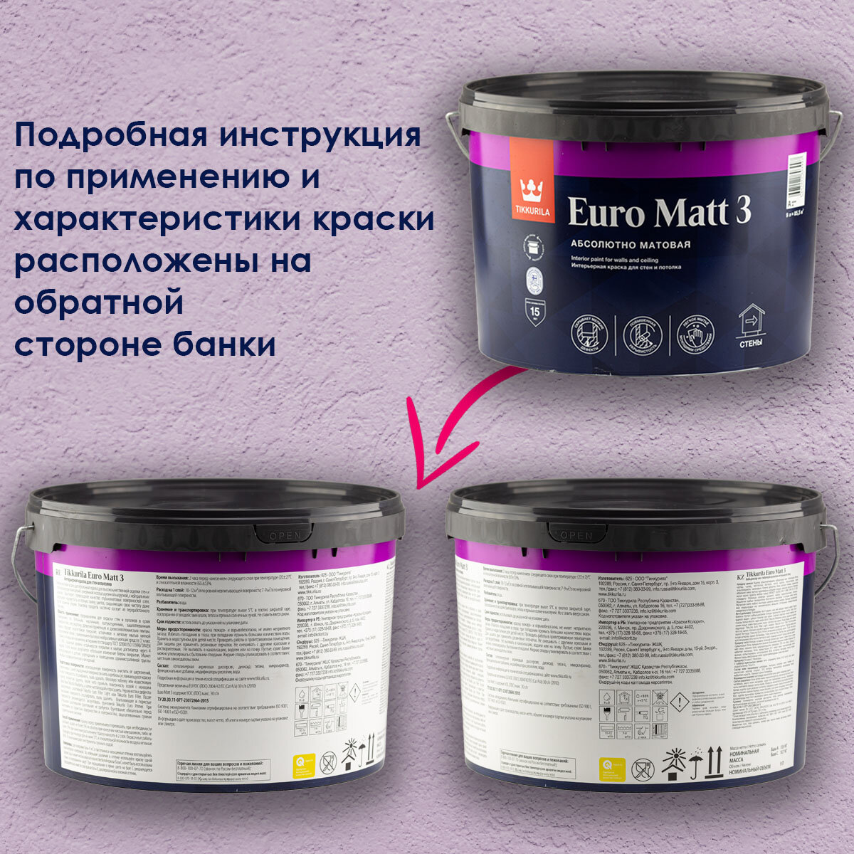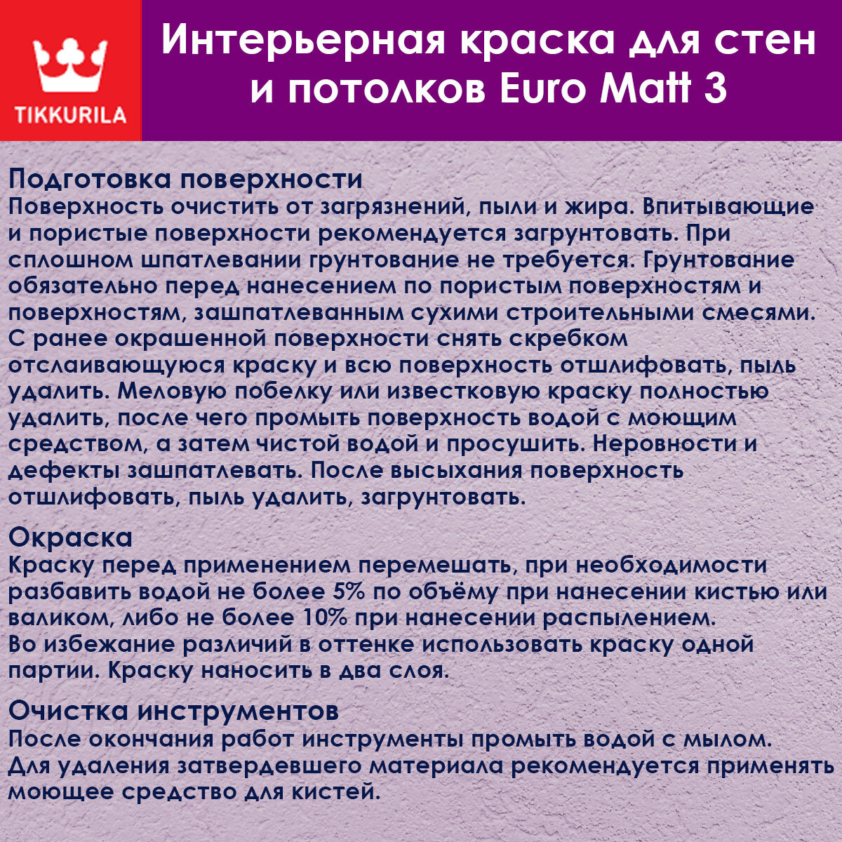 TIKKURILA EURO MATT 3 краска интерьерная для стен и потолков, абсолютно матовая, база C (2,7л)