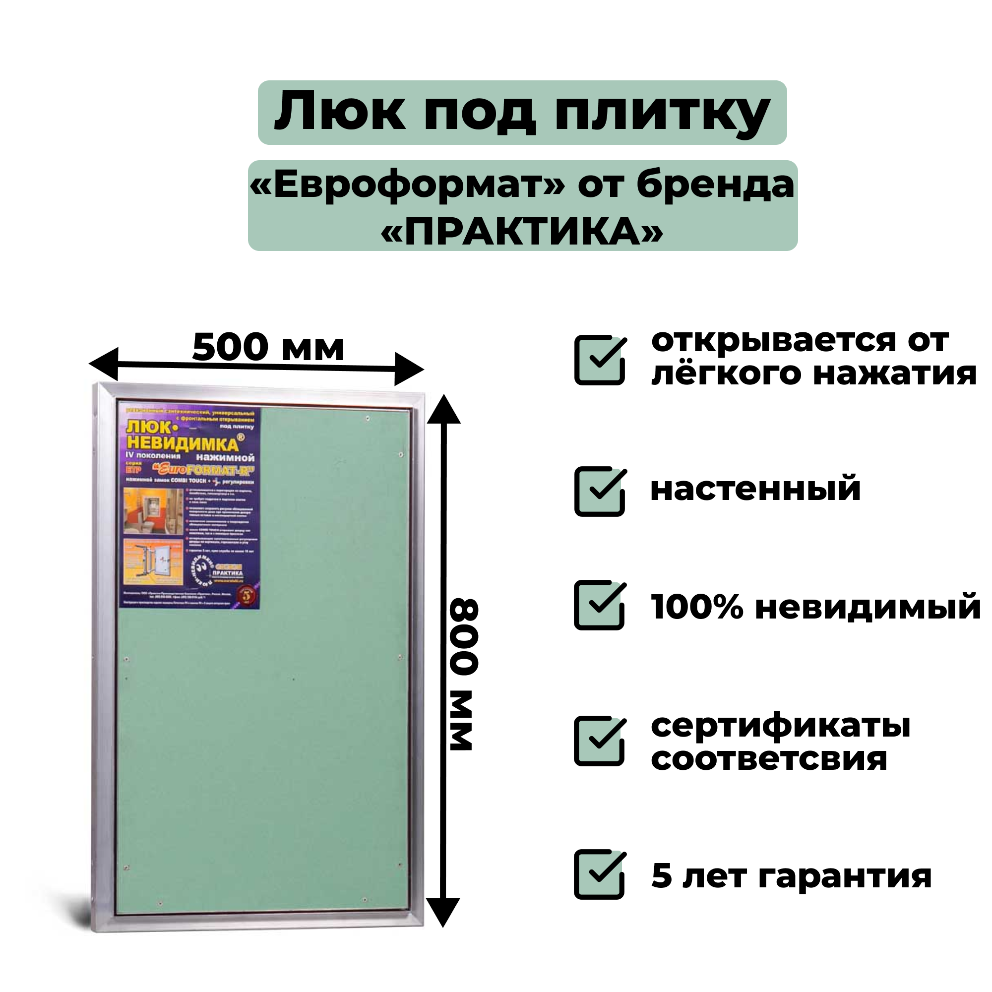 Ревизионный люк Евроформат ЕТР 50-80 настенный под плитку ПРАКТИКА
