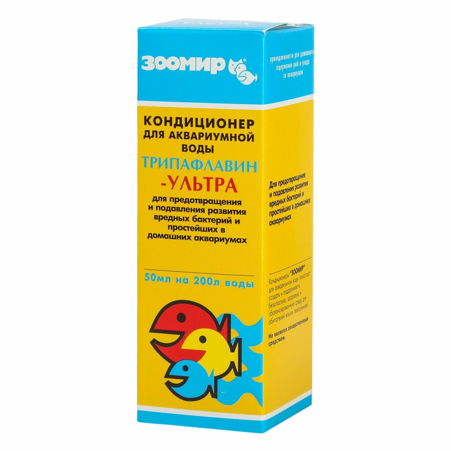 Кондиционер Зоомир трипафлавин-ультра для аквариумной воды подавление эктопаразитарных, бактериальных и грибковых инфекций, 50 мл