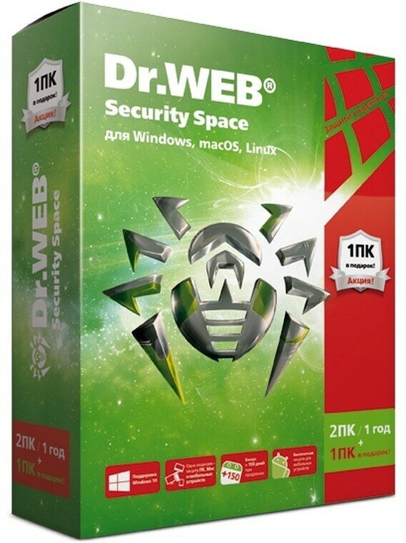 Dr.Web Security Space, коробочная версия с диском, русский, количество пользователей/устройств: 2 ус., 24 мес.