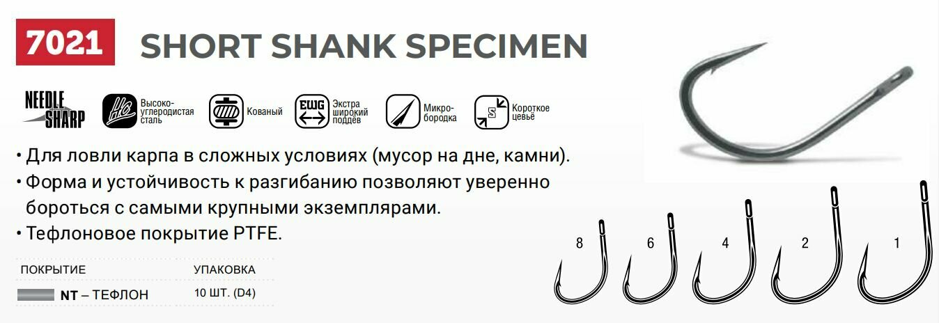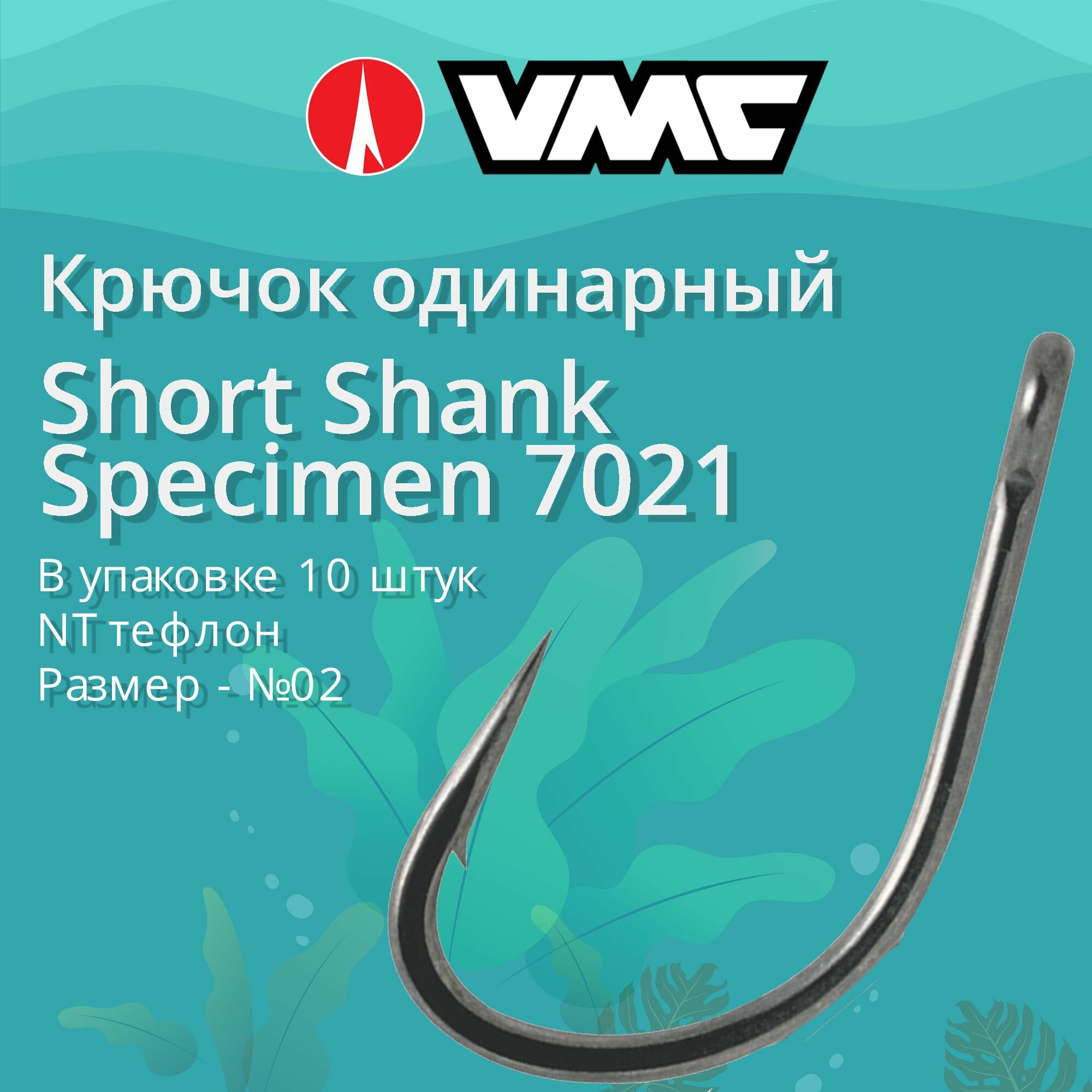 Крючки для рыбалки (одинарный) VMC Short Shank Specimen 7021 NT (тефлон) №02, упаковка 10 штук