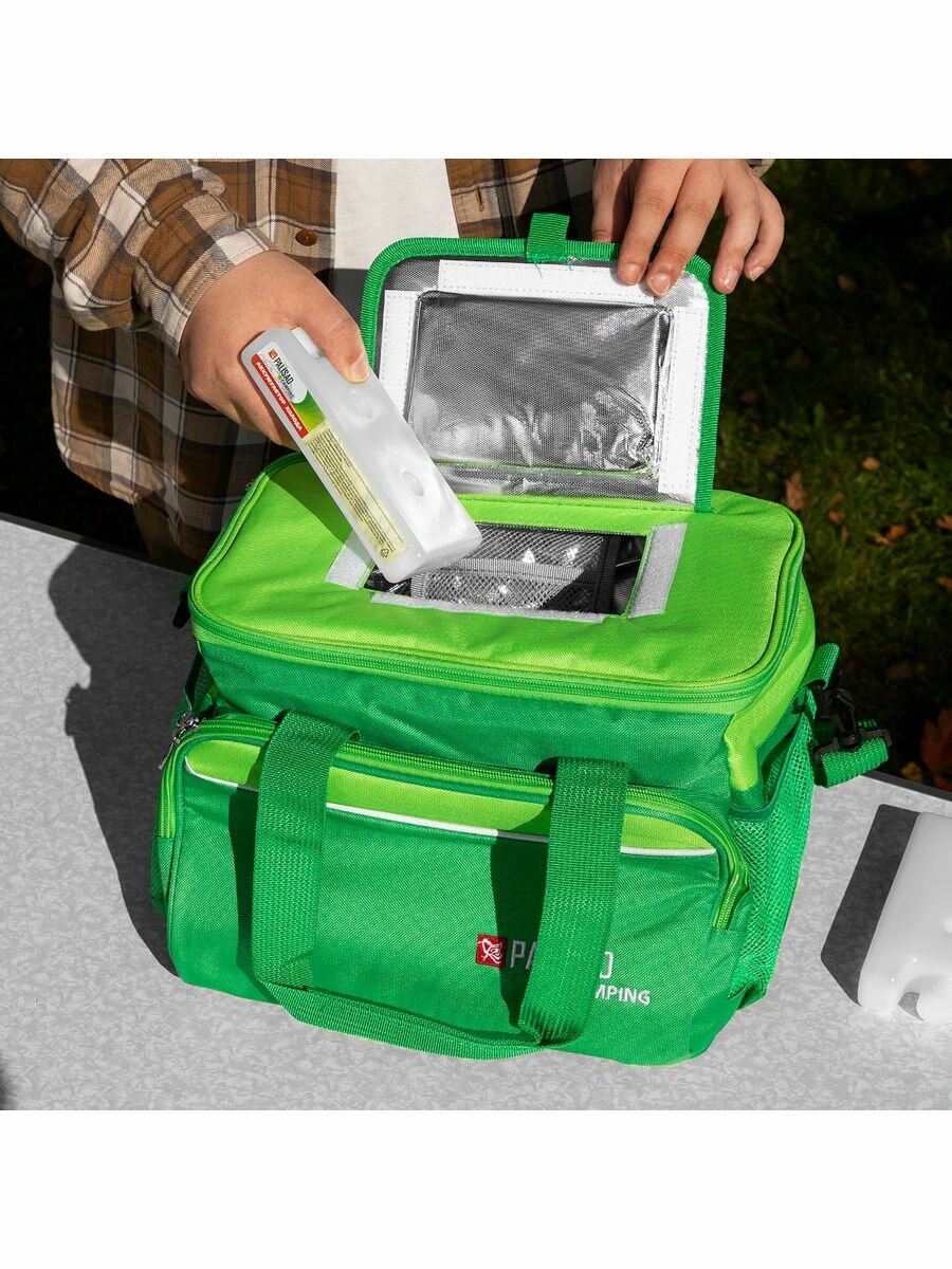 Сумка-холодильник 320x250x240 мм, 20 л, с двумя охлаждающими блоками, зеленый Camping// Palisad