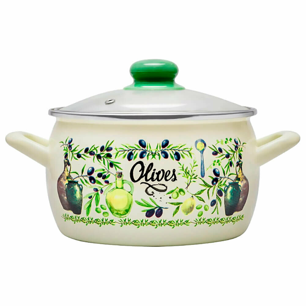 Кастрюля эмалированная Metrot Олива с крышкой, 2,2 л