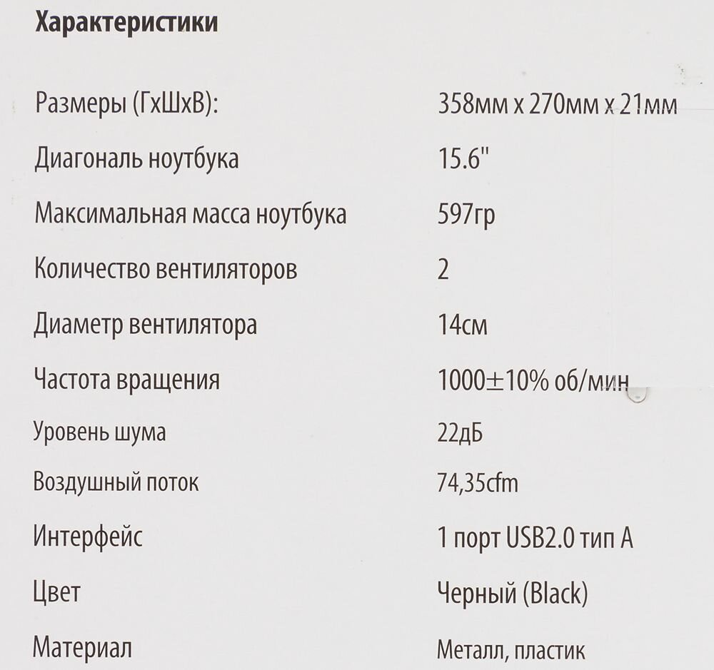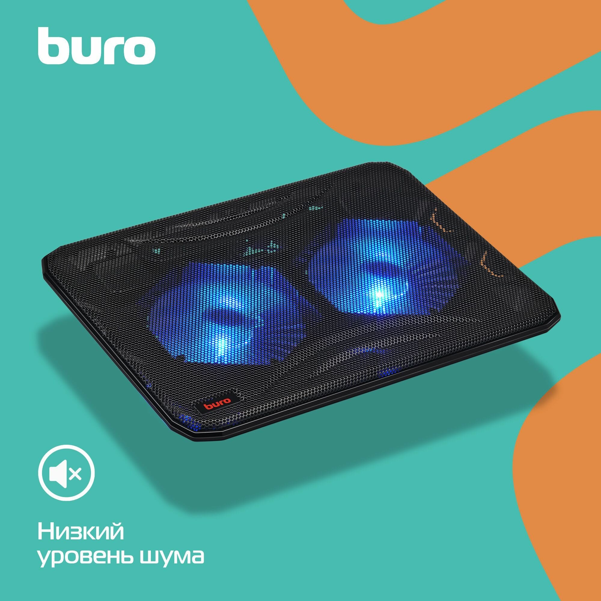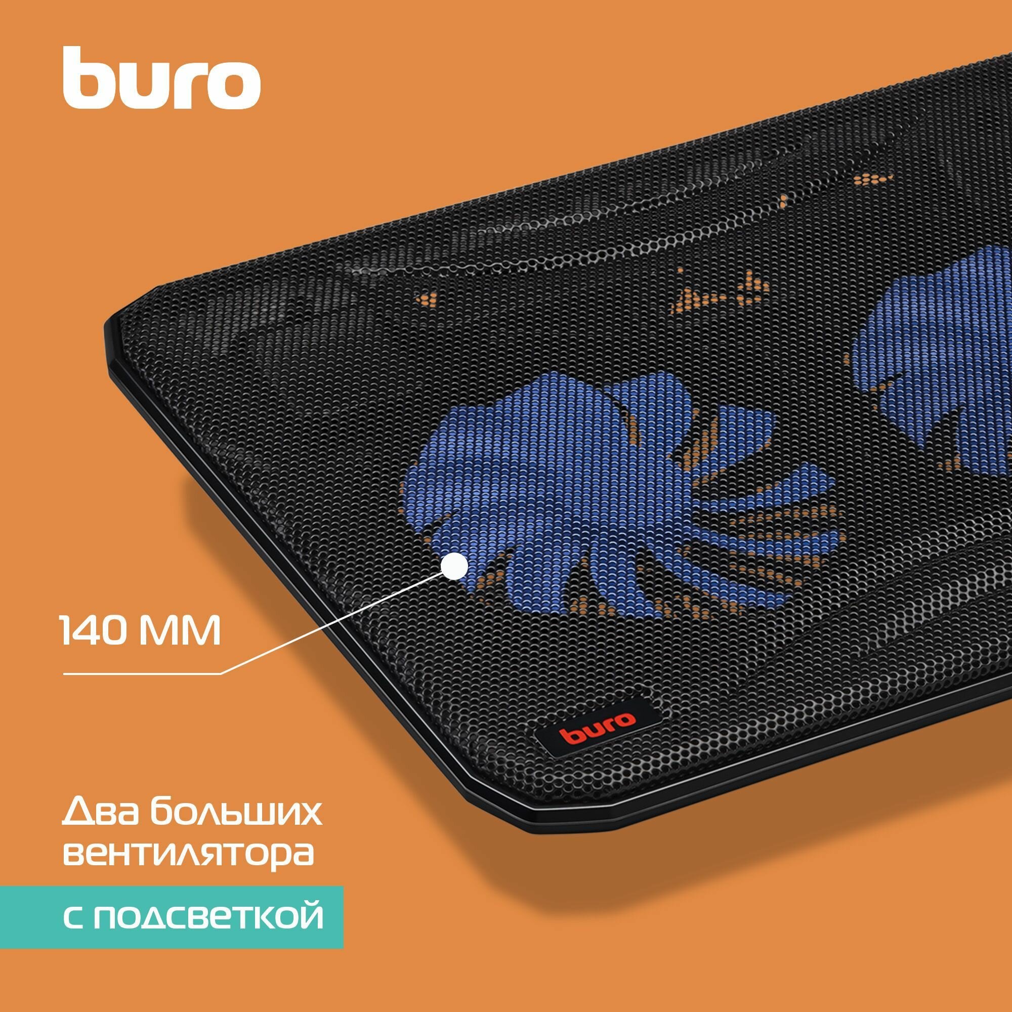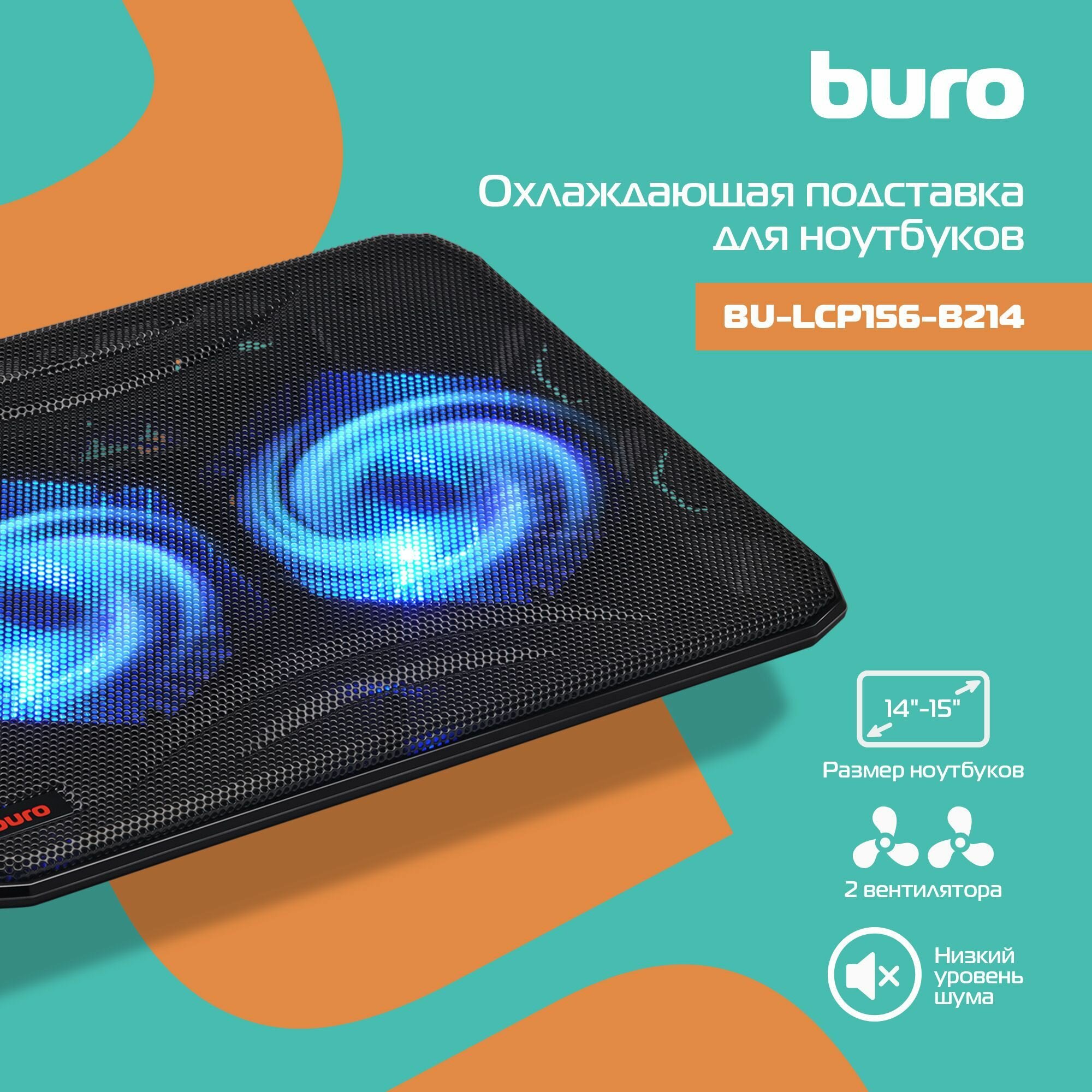 Подставка для ноутбука Buro BU-LCP156-B214, 15.6", 358х270х21 мм, 1хUSB, вентиляторы 2 х 140 мм, 597г, черный