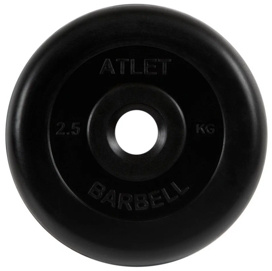 Диск обрезиненный, чёрного цвета, 26 мм, 2,5 кг MB Barbell Atlet MB-AtletB26-2,5