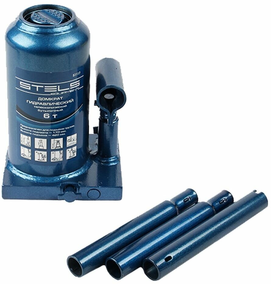 Домкрат гидравлический бутылочный телескопический, 6 т, H подъема 170-420 мм Stels, ( 51117 )