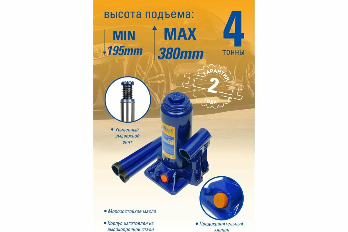 Домкрат гидравлический 4 т 195 - 380 мм кейс Kraft KRAFT KT800014 | цена за 1 шт