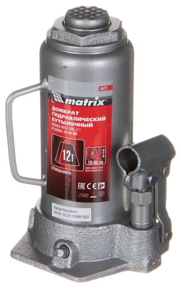 Домкрат MATRIX 50727 гидравлический бутылочный 12 т h подъема 230–465мм master