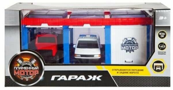 Гараж "Служба спасения"(в наборе пожарная машина и скорая помощь мет. 1:43) Пламенный мотор 870274