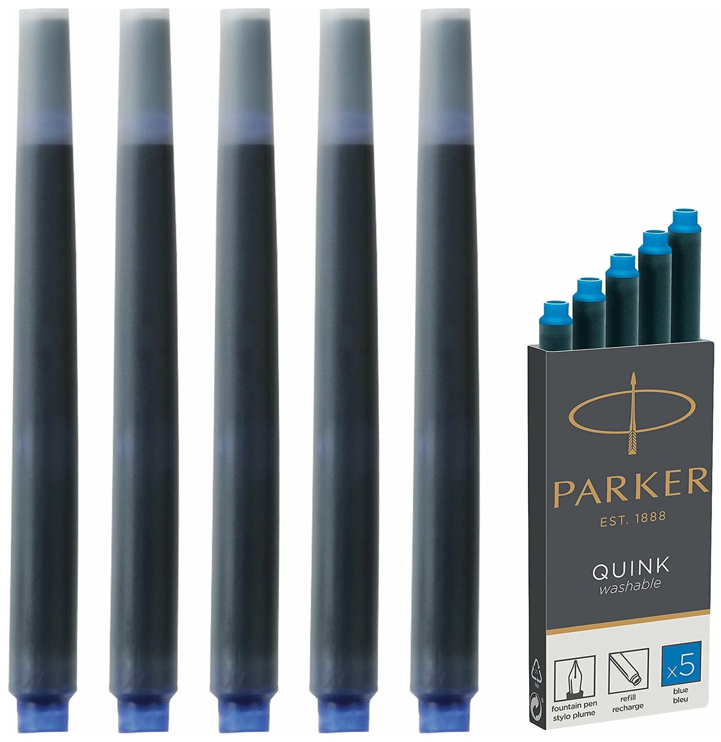 Картридж с чернилами для перьевой ручки Parker Quink, Washable Blue, упаковка из 5 шт.