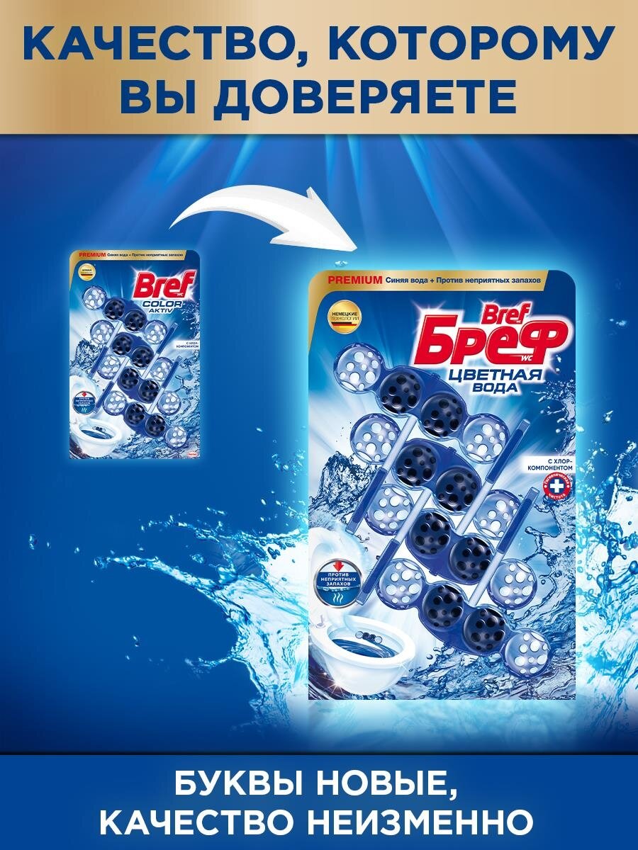 Блок для унитаза Bref бреф Колор Актив с хлор-компонентом 3*50 г