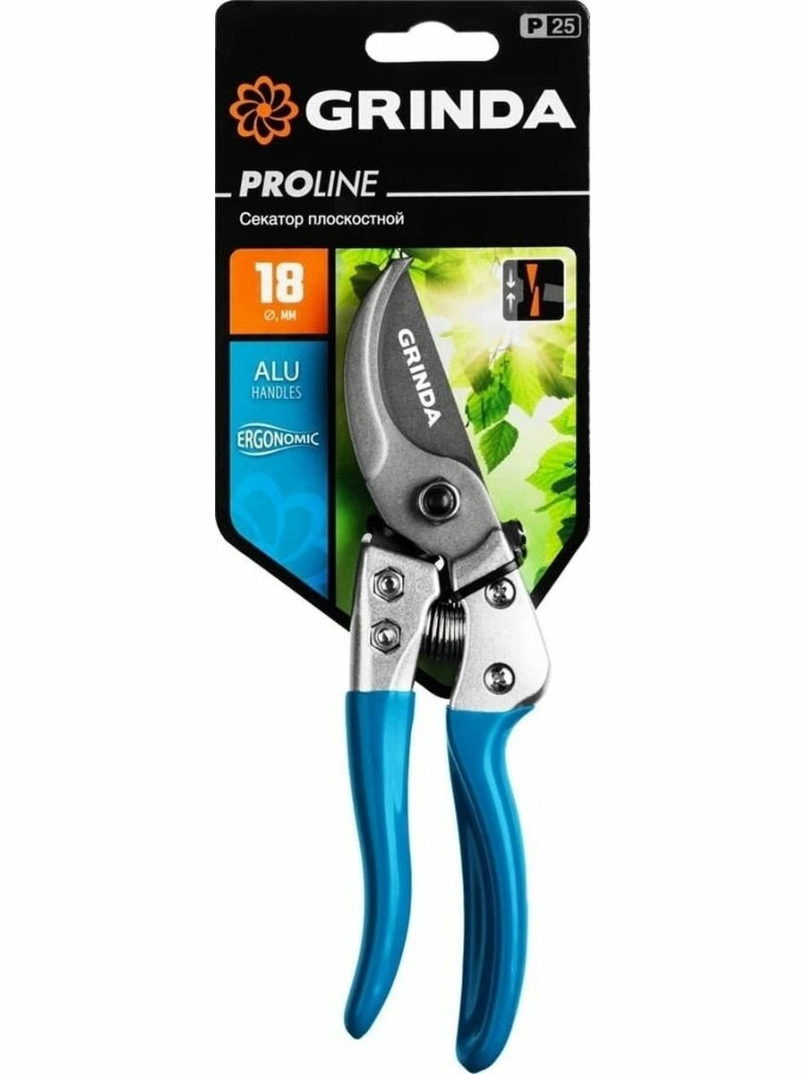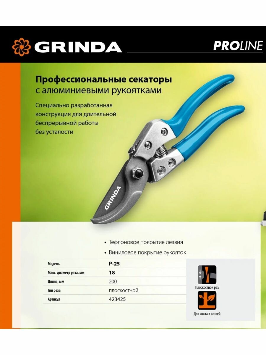 Секатор плоскостной GRINDA PROLine Р-25 с эргономичными алюминиевыми рукоятками, 423425
