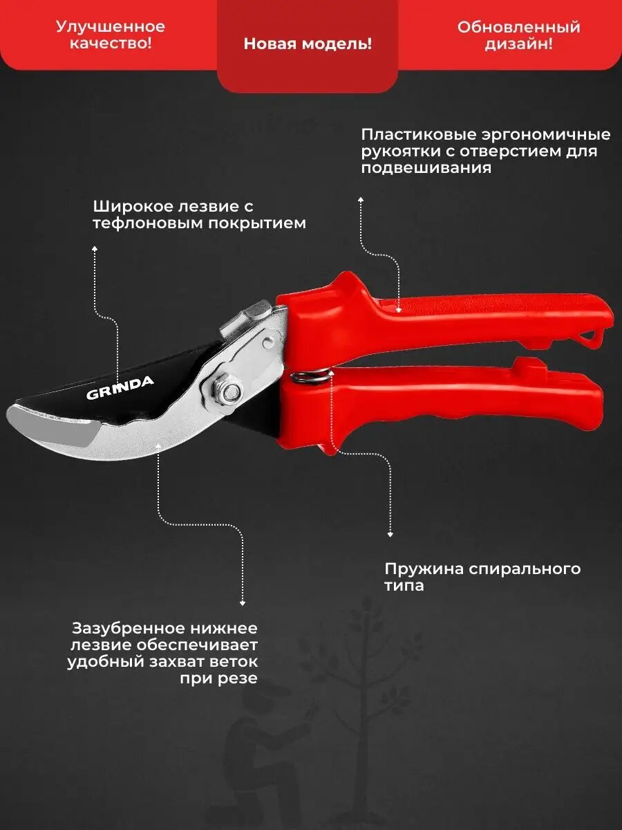 Секатор с пластиковыми рукоятками, GRINDA 40212_z02