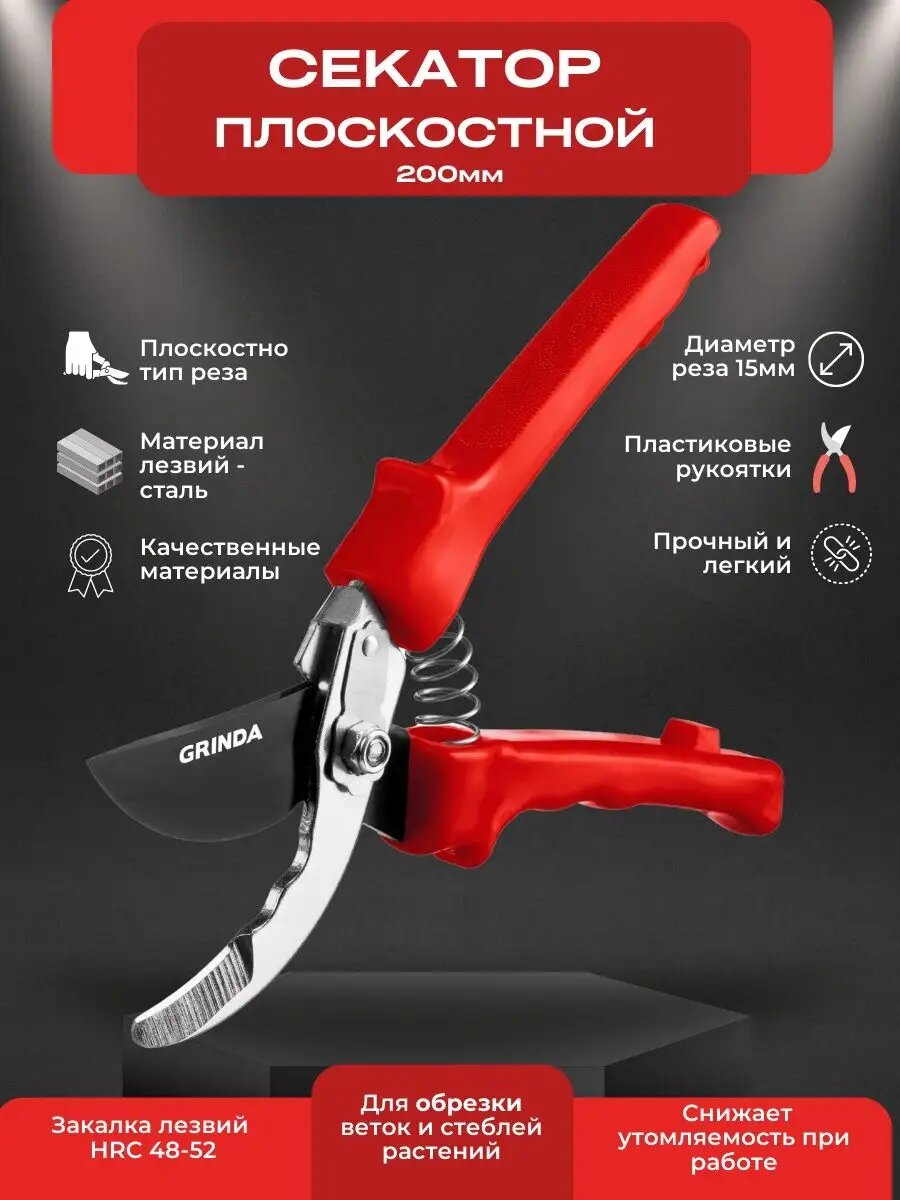 GRINDA Секатор с пластиковыми рукоятками, плоскостной, 200мм, G-35 GRINDA
