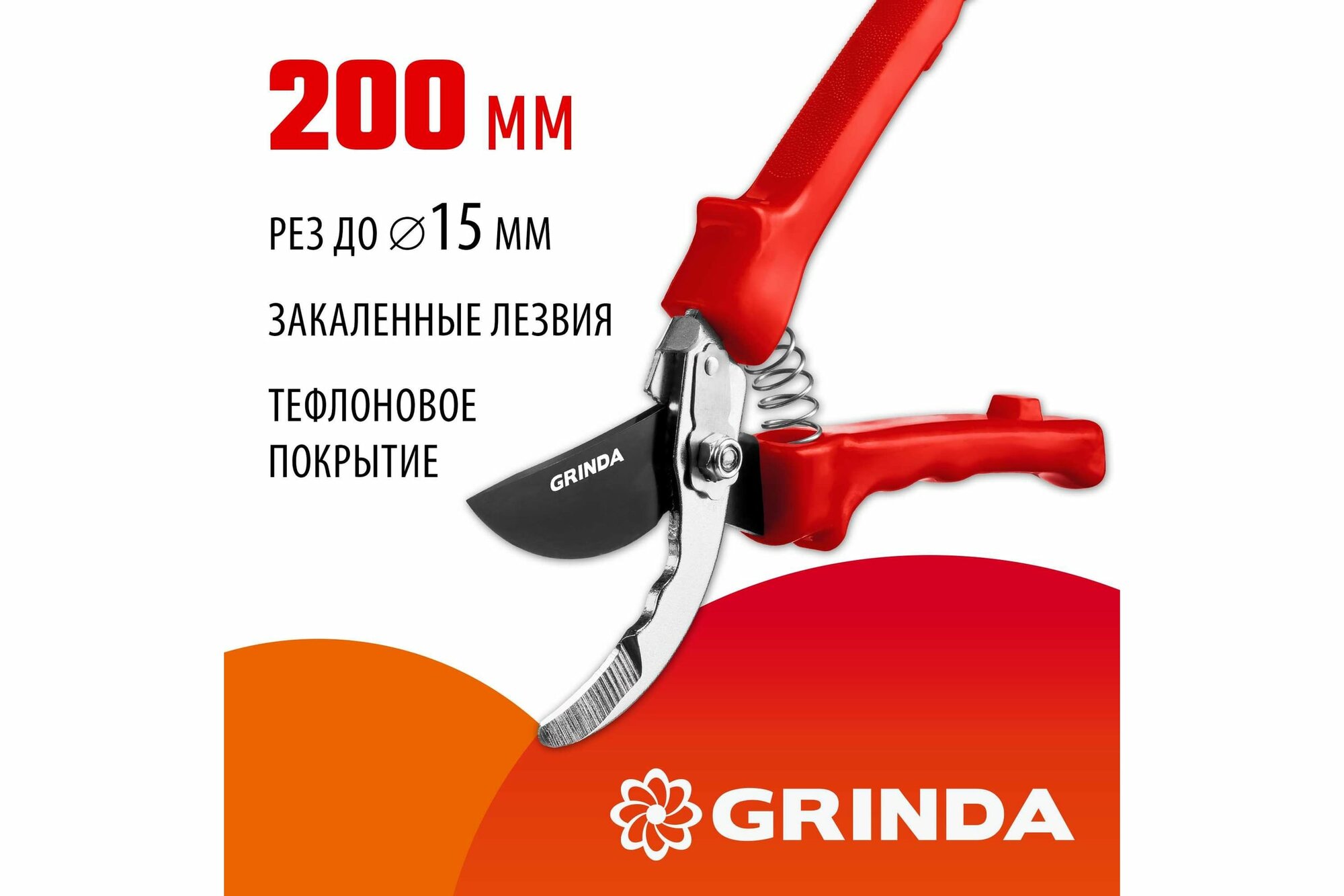 Секатор садовый GRINDA G-35, 200 мм, закаленные лезвия, тефлоновое покрытие, пластиковые рукоятки, плоскостной (40212)