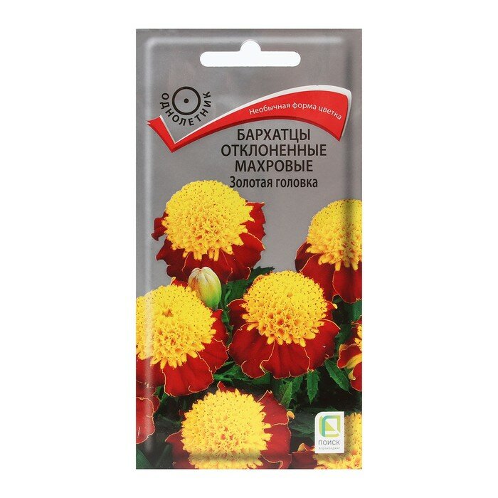 Семена цветов Поиск Бархатцы отклоненные махровые Золотая головка, 0,4 г