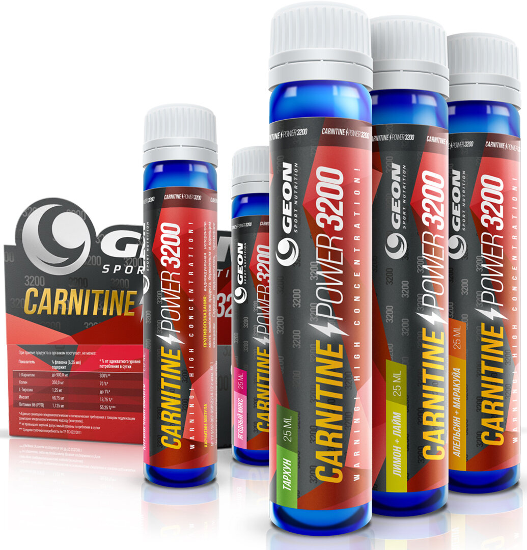 GEON Карнитин GEON Carnitine Power 3200 25 мл, 20 амп, вкус: фруктовая смесь