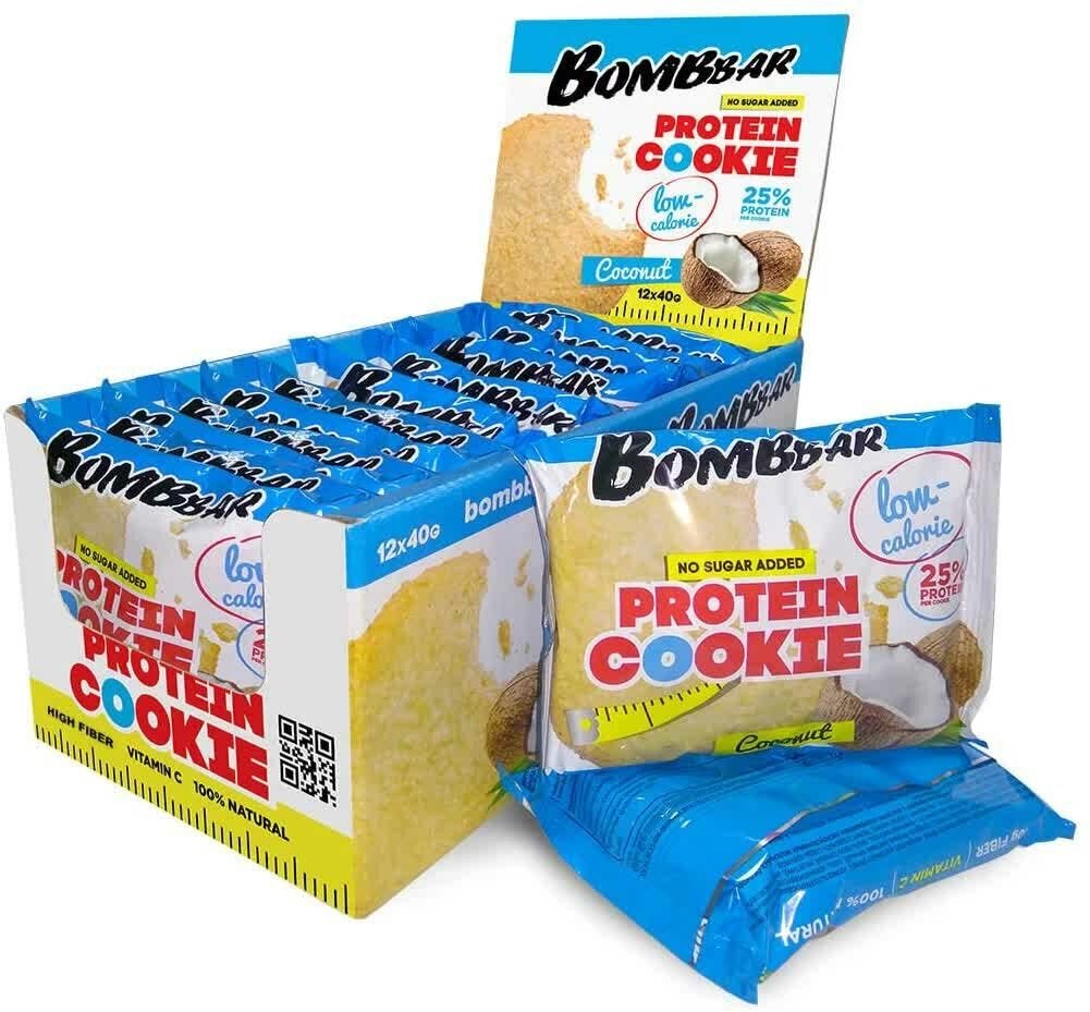 Низкокалорийное протеиновое печенье Bombbar Protein Cookie без сахара низкокалорийное "Кокос", 12шт х 40г