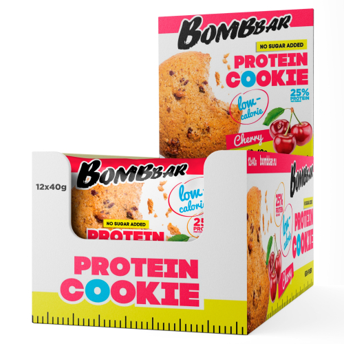 Протеиновое печенье низкокалорийное Bombbar Protein Cookie без сахара, Вишня (12шт по 40г)