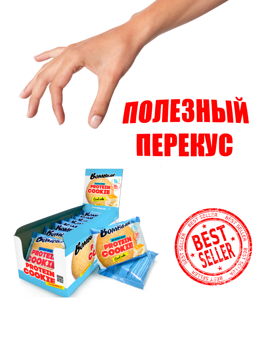 СохранитьПротеиновое печенье без сахара Bombbar, Творожный кекс, 60г х 10 шт. интересное: