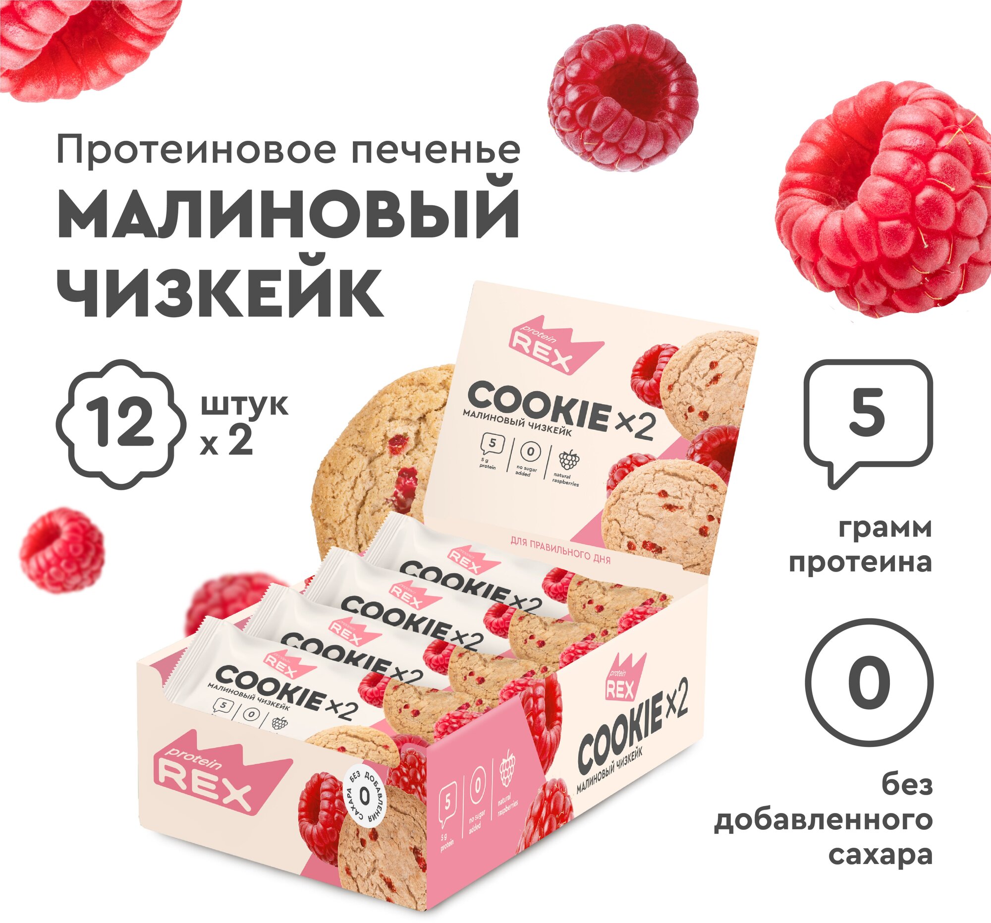 Купить Низкокалорийное протеиновое печенье без сахара ProteinRex COOKIE (Куки) в упаковке малиновый чизкейк, 12шт х2 х 50 г, 190 ккал, спортивное питание