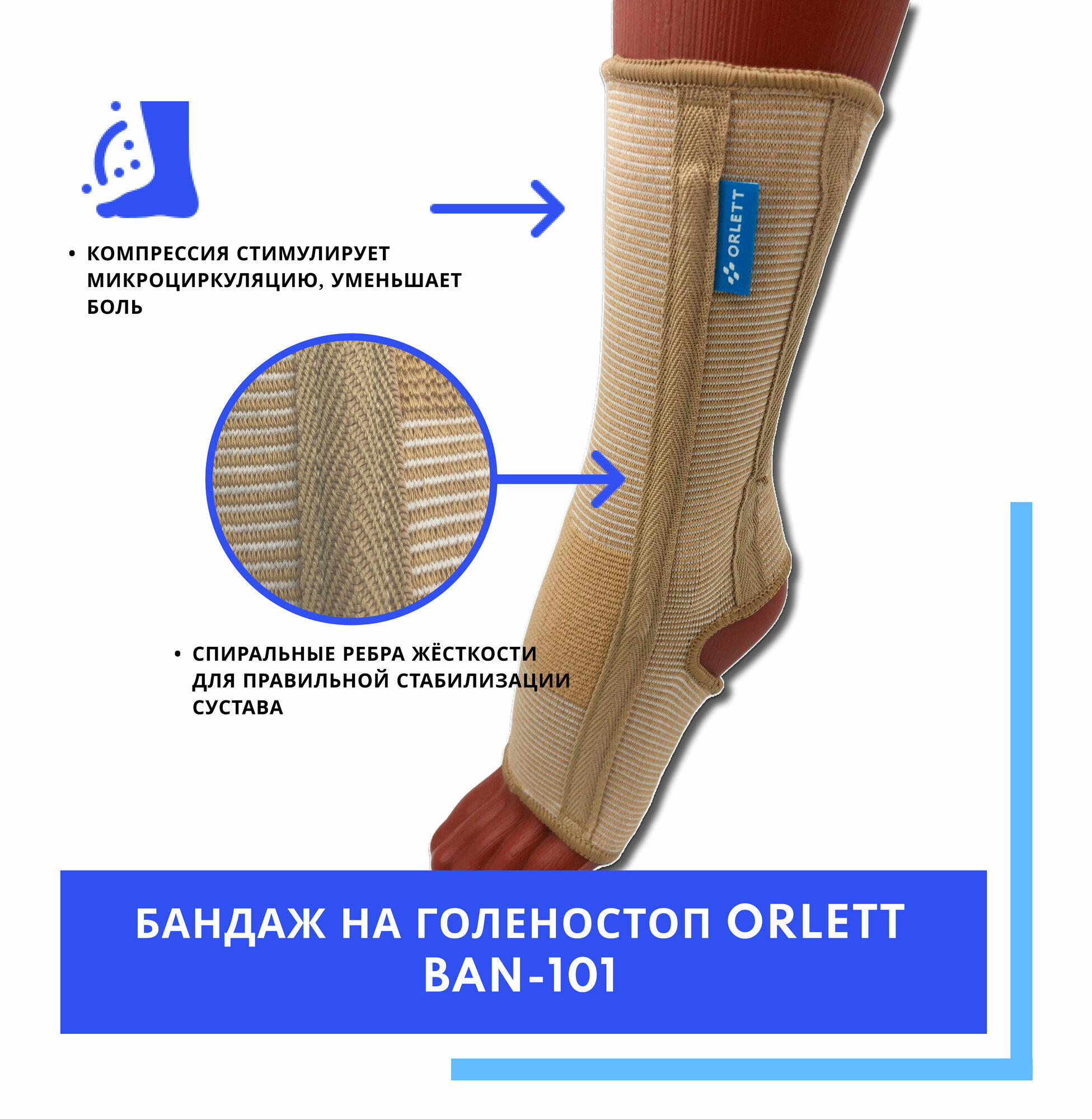 Бандаж голеностопный Orlett ВAN-101(M), размер - s, бежевый