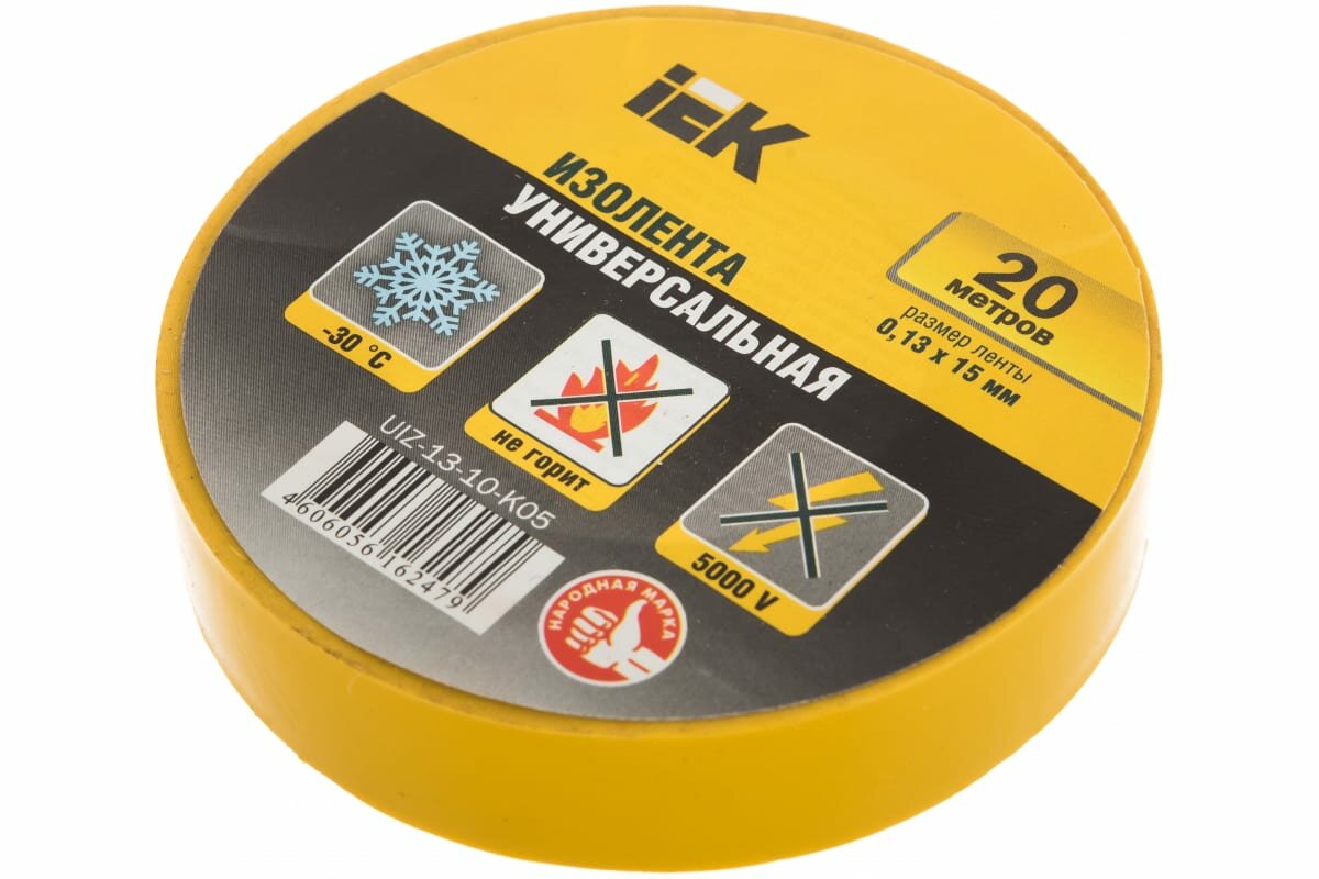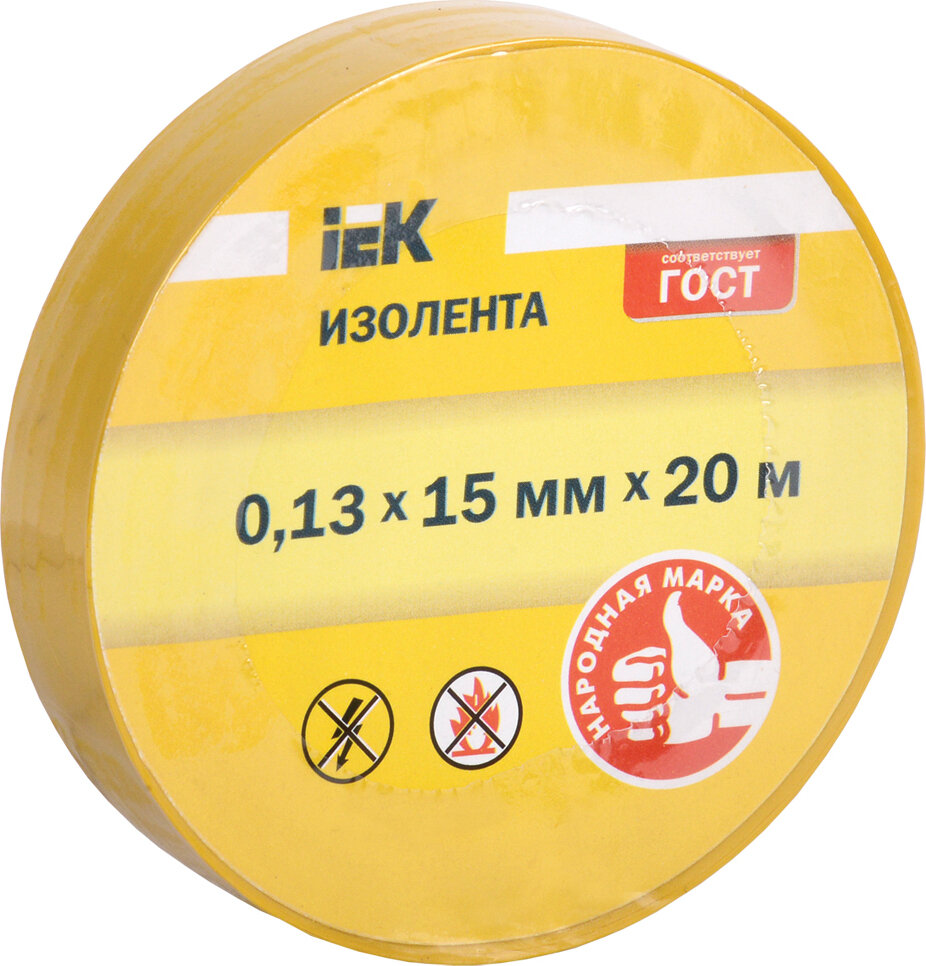 Изолента Iek 0,13х15 мм желтая 20 метров, UIZ-13-10-K05