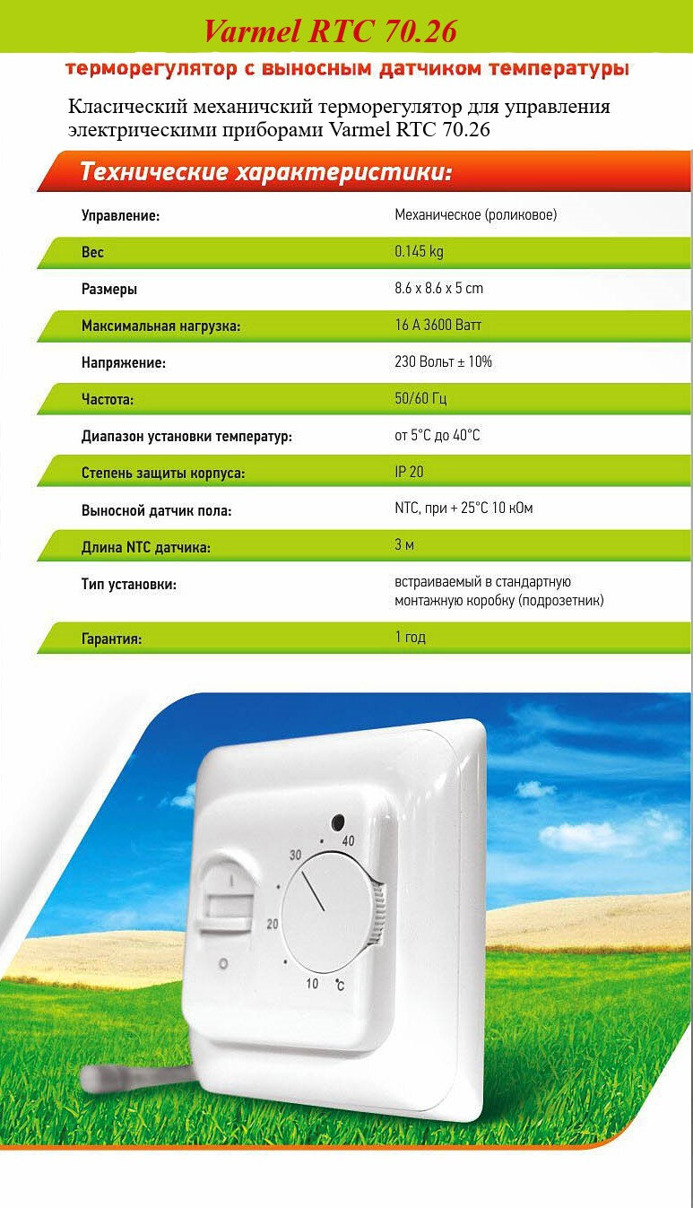 Терморегулятор Varmel RTC 70.26 белый механический до 3,5 кВт (встраиваемый) интересное: