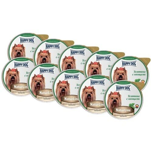 HAPPY DOG NATUR LINE для взрослых собак маленьких пород паштет с телятиной и овощами (125 гр х 10 шт)